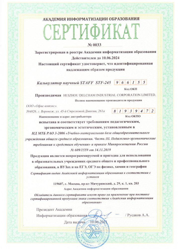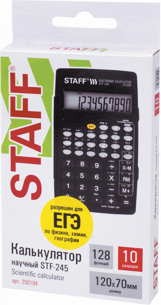 💳 Оплатить за товар можно при получении 🇰🇿 Есть бесплатная доставка по Казахстану от 1 дня 🎁 Копите бонусы с каждой покупки Непрограммируемый инженерный калькулятор Staff STF-245 выполняет все основные вычисления, которые понадобятся школьникам на экзаменах и контрольных работах по физике, химии, биологии и географии. |