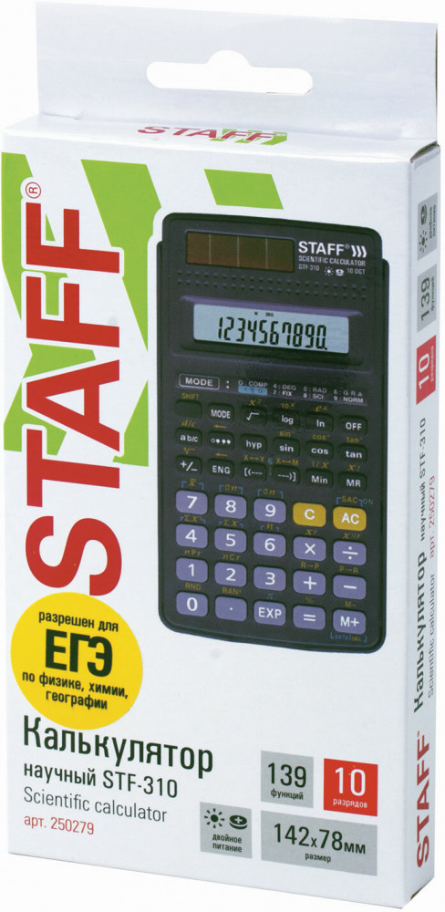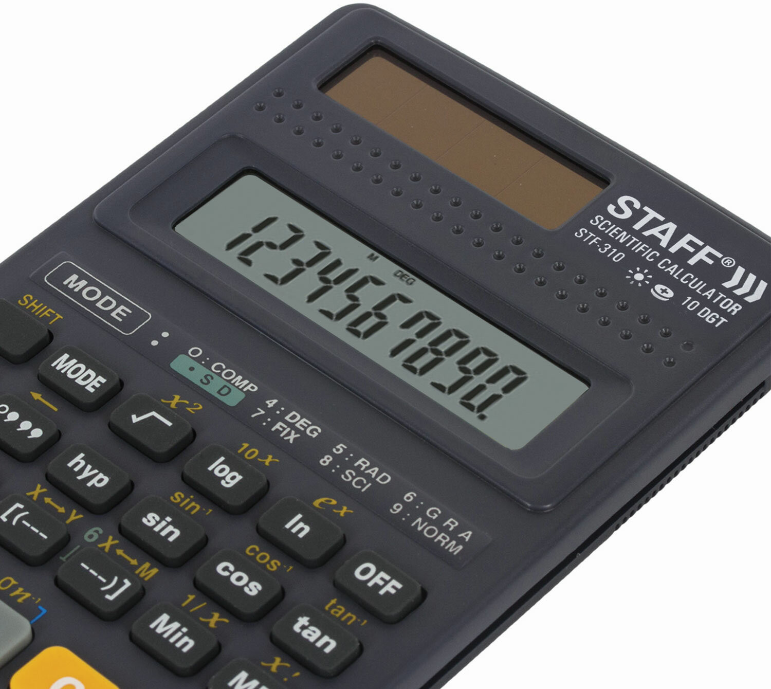 Непрограммируемый инженерный калькулятор Staff STF-310 выполняет все основные вычисления, которые понадобятся школьникам на экзаменах и контрольных работах по физике, химии, биологии и географии. |