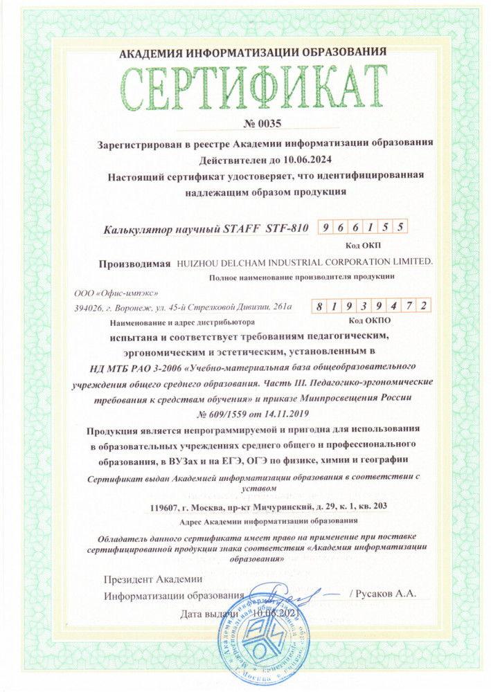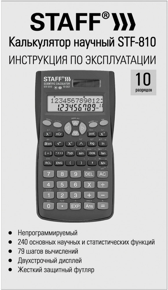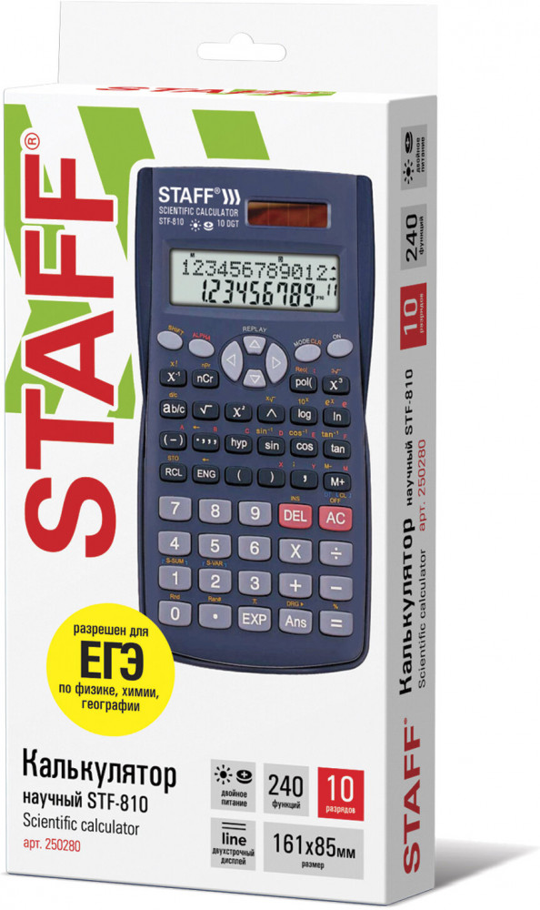 💳 Оплатить за товар можно при получении 🇰🇿 Есть бесплатная доставка по Казахстану от 1 дня 🎁 Копите бонусы с каждой покупки Непрограммируемый инженерный калькулятор Staff STF-810 выполняет все основные вычисления, которые понадобятся школьникам на экзаменах и контрольных работах по физике, химии, биологии и географии. |