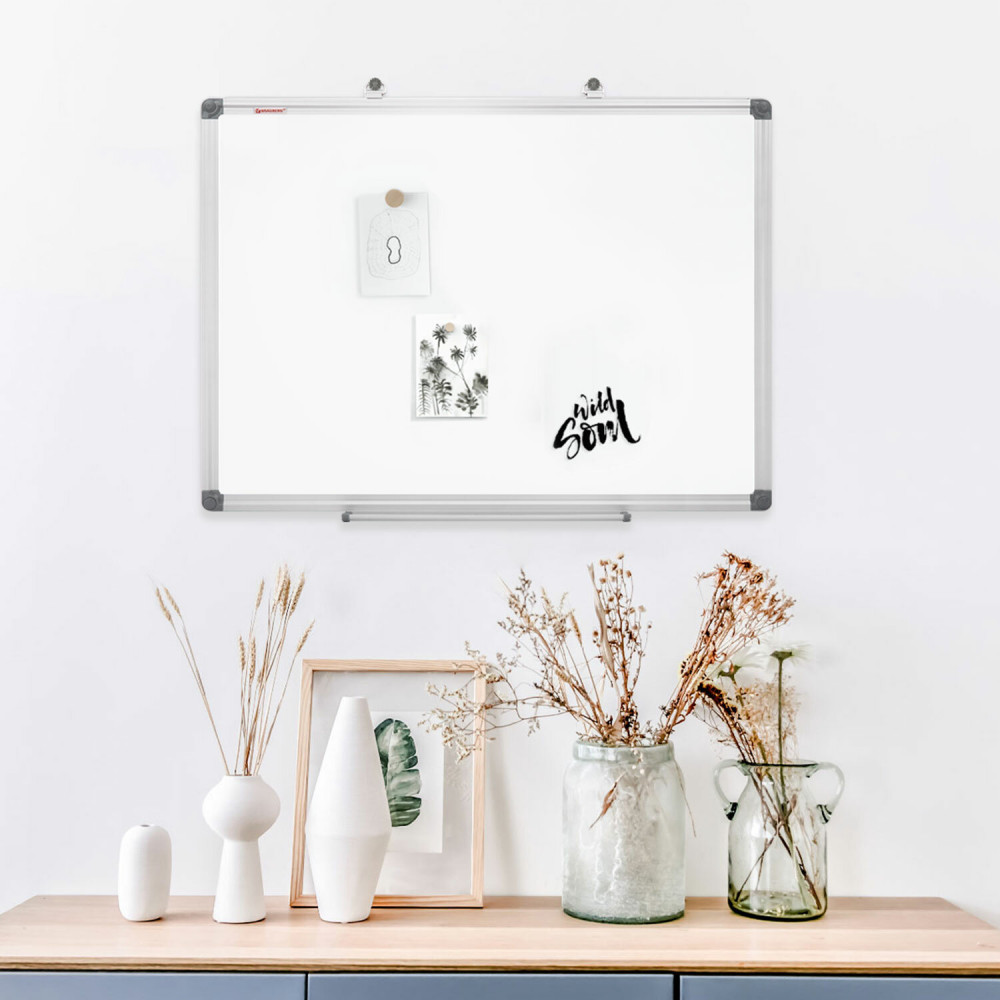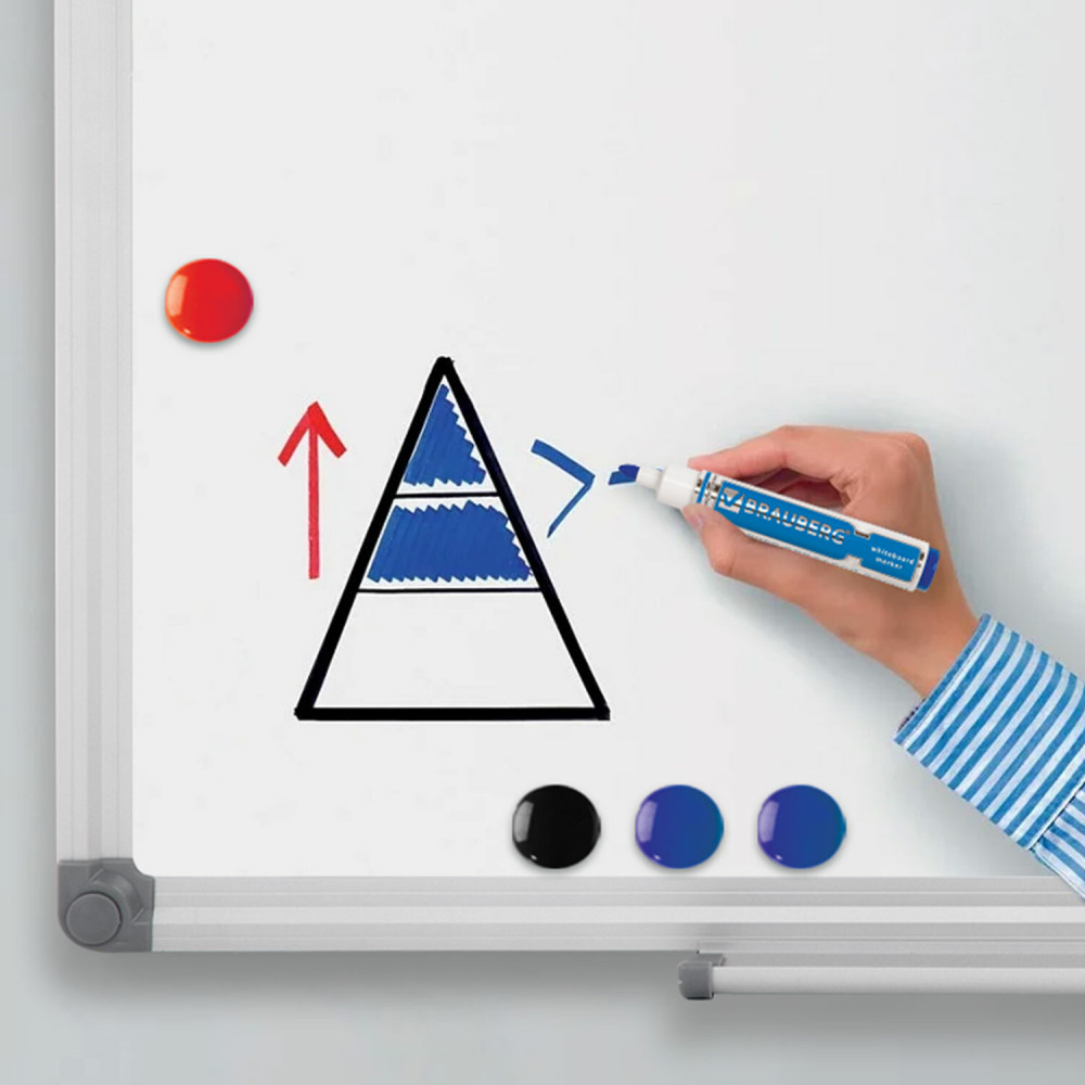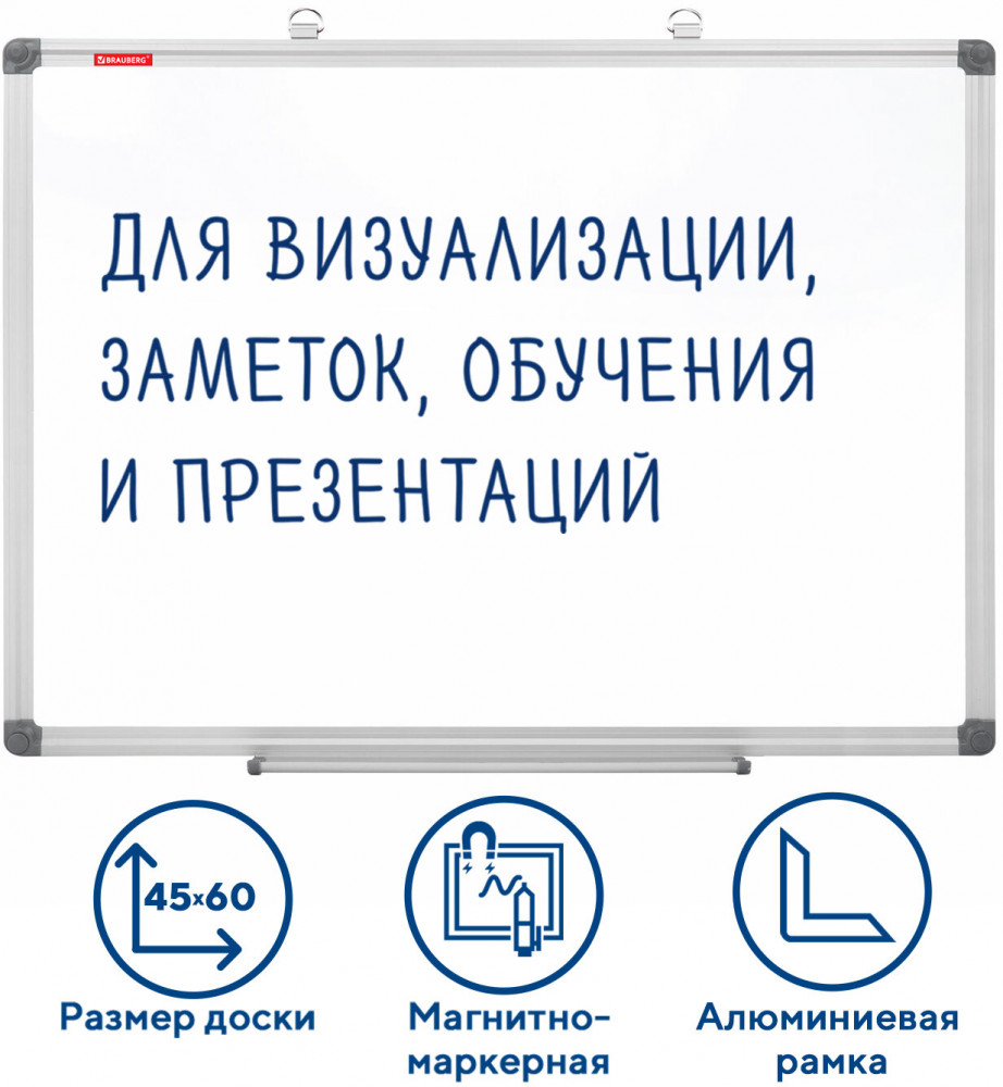 💳 Оплатить за товар можно при получении 🇰🇿 Есть бесплатная доставка по Казахстану 🎁 Копите бонусы с каждой покупки Магнитно-маркерная доска Brauberg «Extra» повсеместно применяется в разнообразных образовательных учреждениях, в офисах, залах для обучения, презентаций, ежедневных записей и семинаров. Лаковое покрытие предназначено для письма специальными маркерами для белой доски, а металлическая поверхность позволяет размещать информацию при помощи магнитов. Доска имеет укрепленные пластиковые уголки, которые позволяют скрыть места крепления к стене. Профиль придает изделию дополнительную прочность и современный стильный внешний вид. Элементы крепления входят в комплект. Для защиты рабочей поверхности доски на нее нанесена защитная пленка. Перед началом работы – удалить защитную пленку. При должном уходе за рабочей поверхностью доски при помощи чистящей жидкости-спрея и стирателей поверхность магнитно-маркерной доски прослужит более 10 лет. |