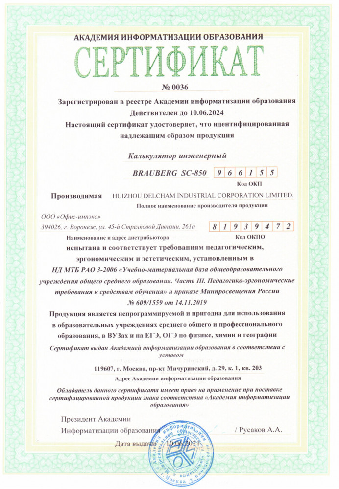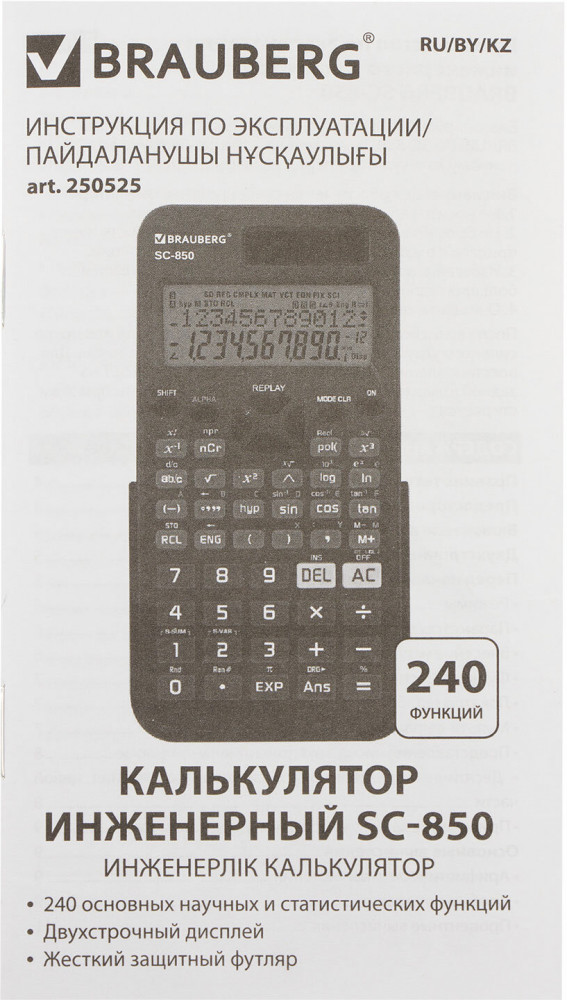 💳 Оплатить за товар можно при получении 🇰🇿 Есть бесплатная доставка по Казахстану от 1 дня 🎁 Копите бонусы с каждой покупки Непрограммируемый инженерный калькулятор Brauberg SC-850 выполняет все основные вычисления, которые понадобятся школьникам на экзаменах и контрольных работах по физике, химии, биологии и географии. |