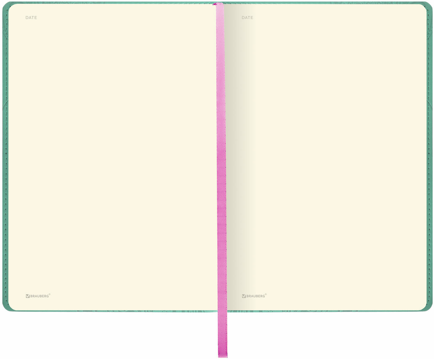 Очень красивый и нежный цвет, мягкая на ощупь обложка, страницы пустые как скетчбук и еще закладка