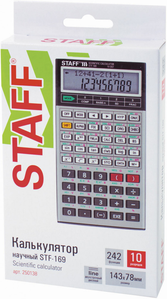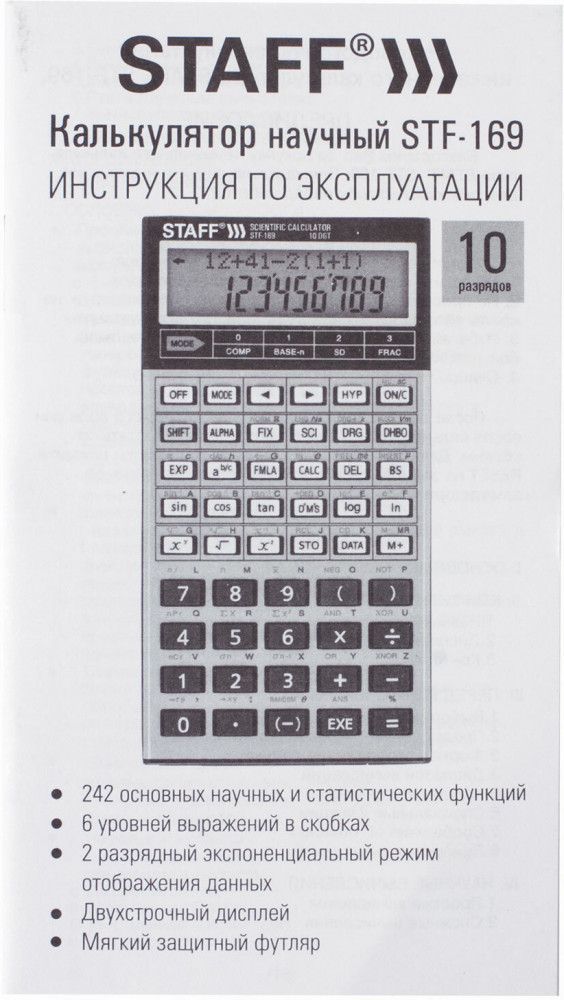 💳 Оплатить за товар можно при получении 🇰🇿 Есть бесплатная доставка по Казахстану от 1 дня 🎁 Копите бонусы с каждой покупки Инженерный калькулятор Staff STF-169 выполняет все основные вычисления, которые понадобятся школьникам и студентам на занятиях по физике, химии, биологии и географии. В памяти калькулятора постоянно содержатся 38 основных формул из школьной программы. |