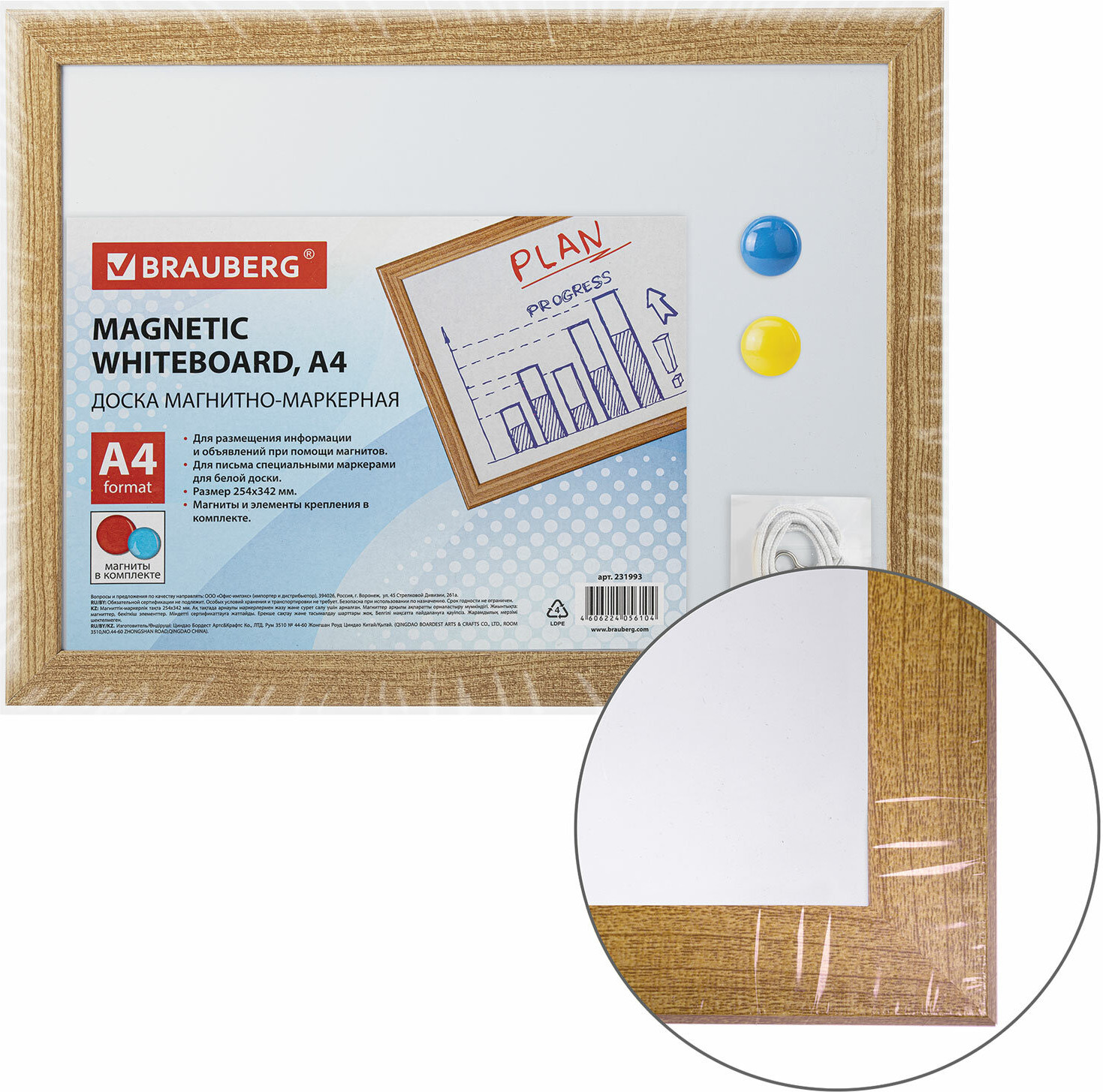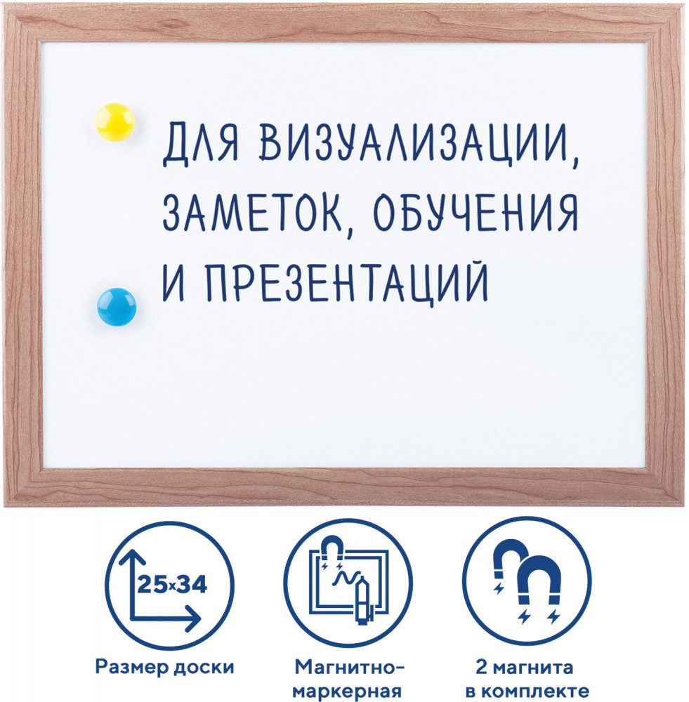 💳 Оплатить за товар можно при получении 🇰🇿 Есть бесплатная доставка по Казахстану от 1 дня 🎁 Копите бонусы с каждой покупки Магнитно-маркерная доска Brauberg — незаменимый помощник для проведения тренингов, совещаний и презентаций в учебных заведениях, офисах и коммерческих помещениях. Лаковое покрытие предназначено для письма специальными маркерами для белой доски, а металлическая поверхность позволяет размещать информацию при помощи магнитов. Рама из МДФ придает доске необходимую прочность. Элементы крепления и магниты входят в комплект. При должном уходе за рабочей поверхностью доски при помощи чистящей жидкости-спрея и стирателей поверхность магнитно-маркерной доски прослужит более 10 лет. |