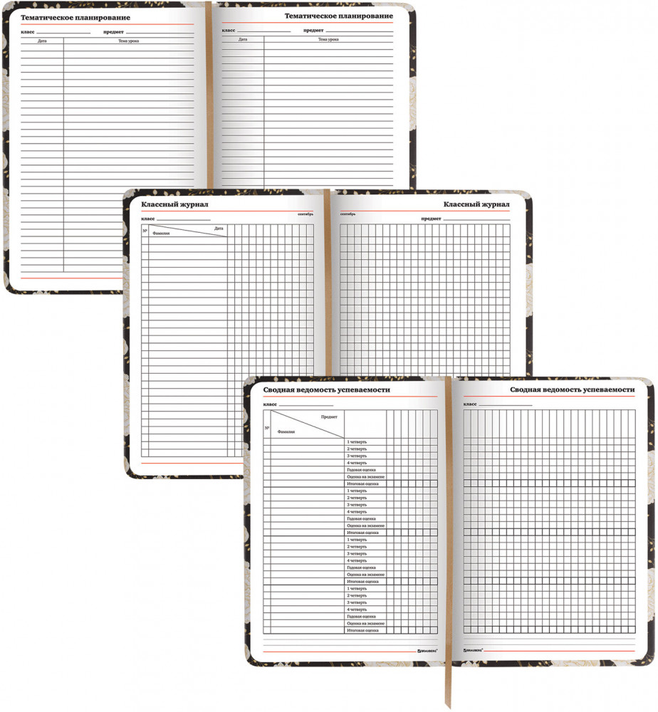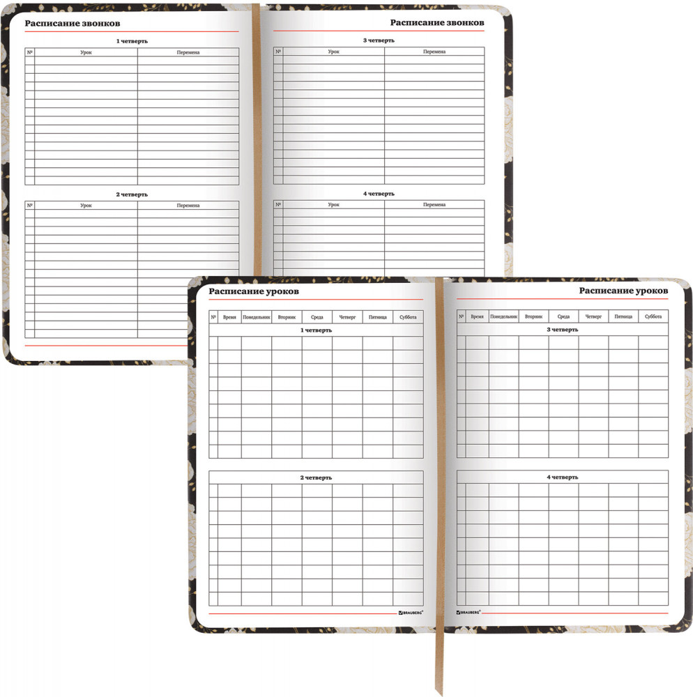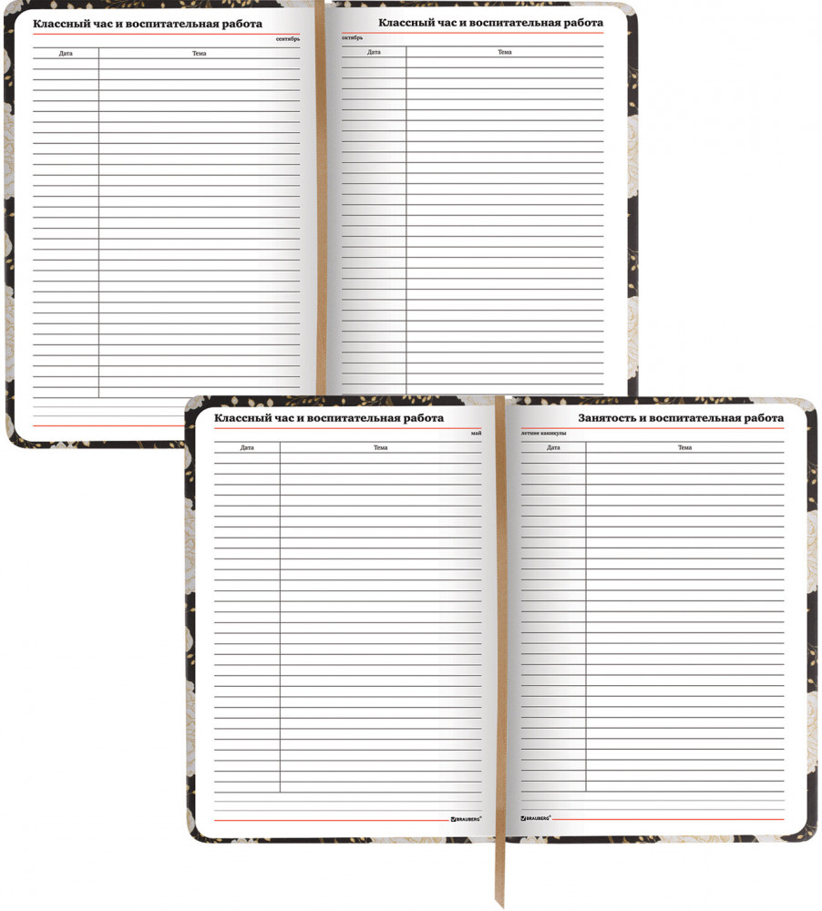 Brauberg Ежедневник учителя «Цветы на чёрном»-20% +36