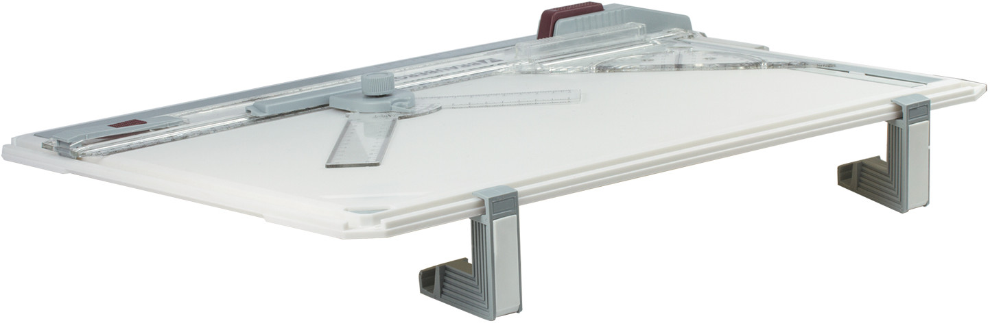 В набор входит: доска чертежная, рейсшина, треугольник и чертежный узел.