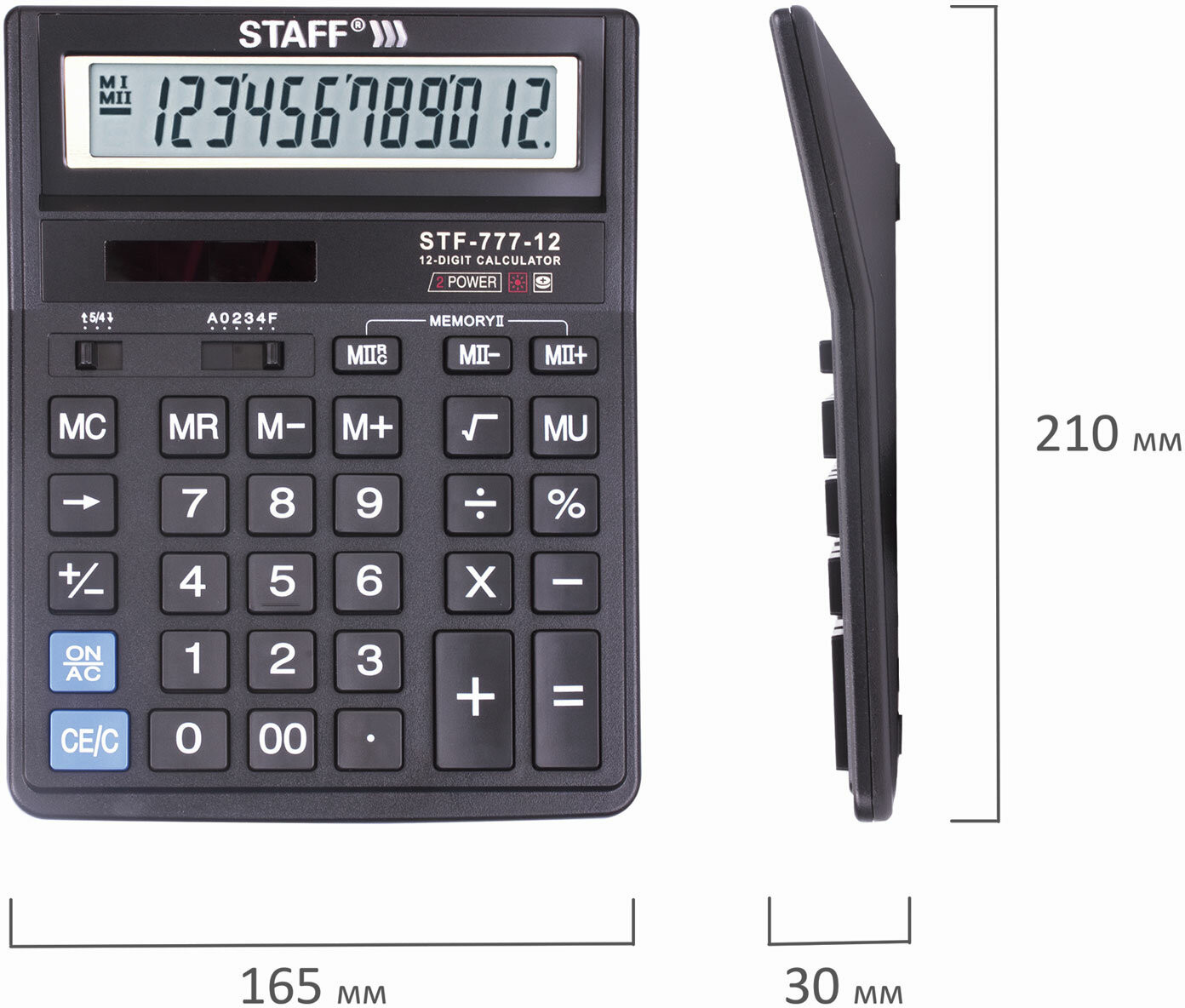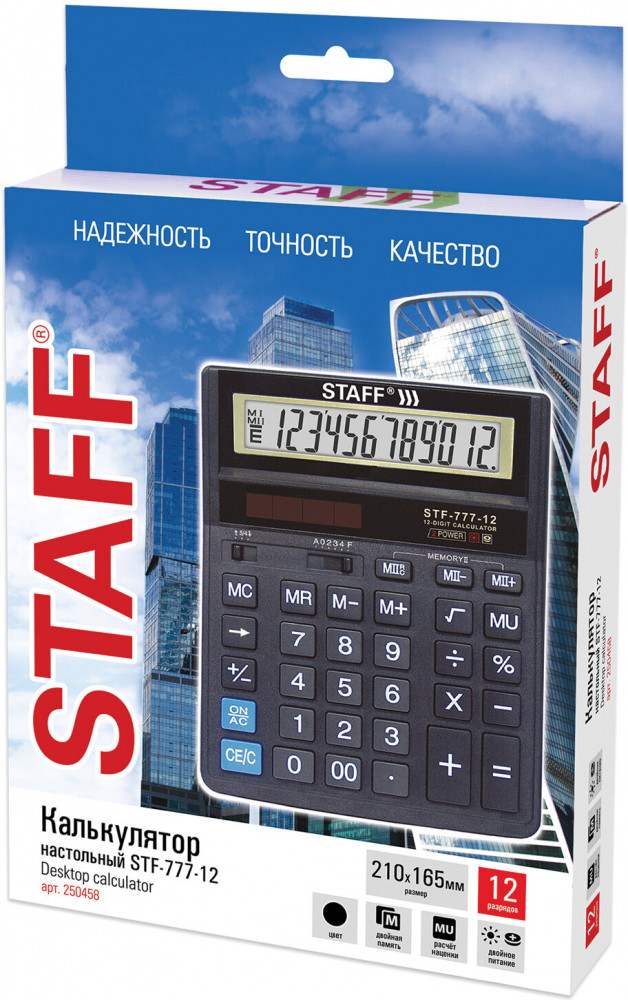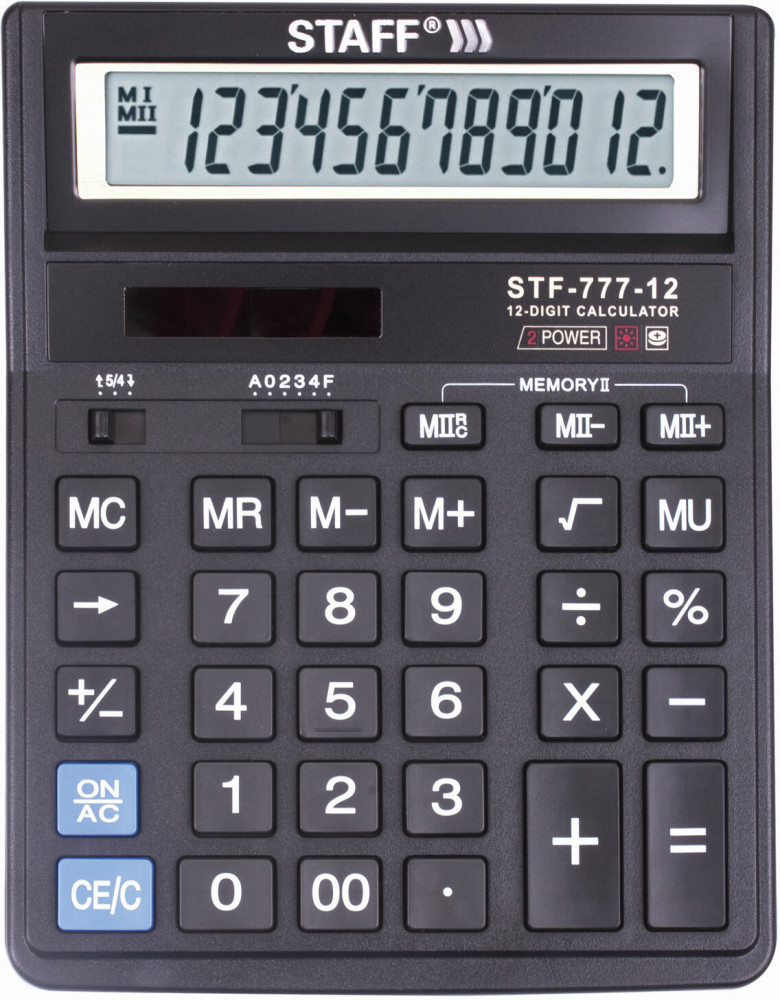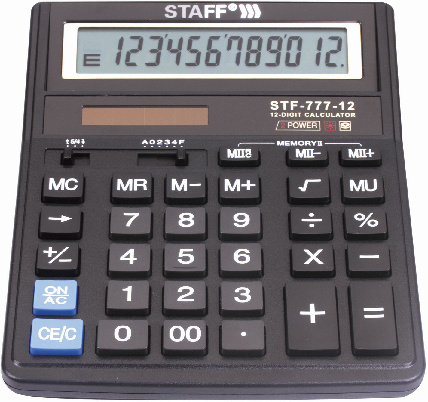 💳 Оплатить за товар можно при получении 🇰🇿 Есть бесплатная доставка по Казахстану от 1 дня 🎁 Копите бонусы с каждой покупки Настольный калькулятор Staff STF-777 популярен как среди бухгалтеров, так и среди продавцов, банковских и офисных сотрудников. Имеет две независимые памяти, возможность установки режимов округления и ограничения количества знаков после запятой, клавишу корректировки введенного последнего знака, клавишу «00». Разрядность дисплея — 12 выводимых на табло цифр, позволяет работать с крупными числами. Клавиша вычисления MU предназначена для финансовых расчетов с учетом торговой наценки. Для экономии энергии предусмотрены два источника питания: солнечная и алкалиновая батареи. Благодаря крупному дисплею и клавишам настольный калькулятор легок в использовании. Модель черного цвета отлично впишется в офисный и домашний интерьер. |