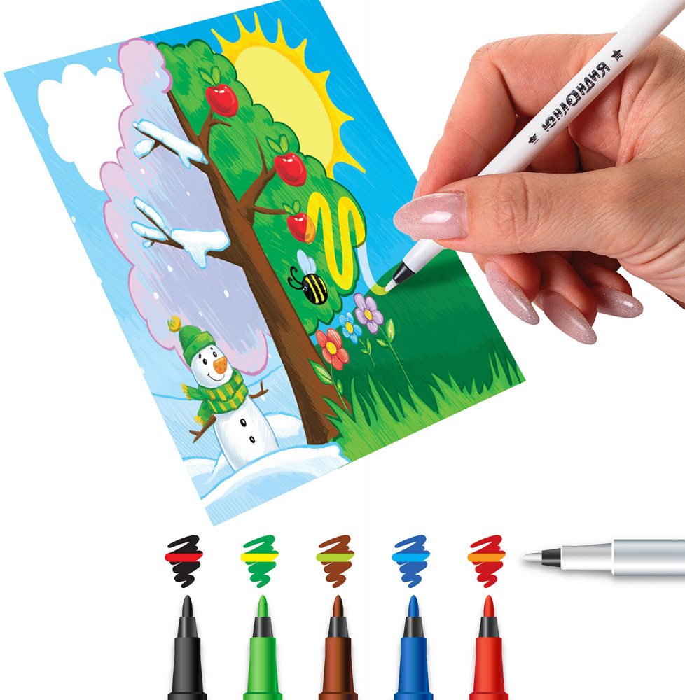 💳 Оплатить за товар можно при получении 🇰🇿 Есть бесплатная доставка по Казахстану от 1 дня 🎁 Копите бонусы с каждой покупки Серия: Юный Волшебник Фломастеры, меняющие цвет — незаменимый помощник для юных художников. Яркие цвета и их преображение на бумаге порадуют как детей, так и их родителей. Фломастеры обладают яркими насыщенными цветами. Каждый фломастер имеет 2 цвета. Цвет корпуса соответствует основному цвету чернил, а цвет колпачка цвету, который проявляется после применения белого фломастера. |