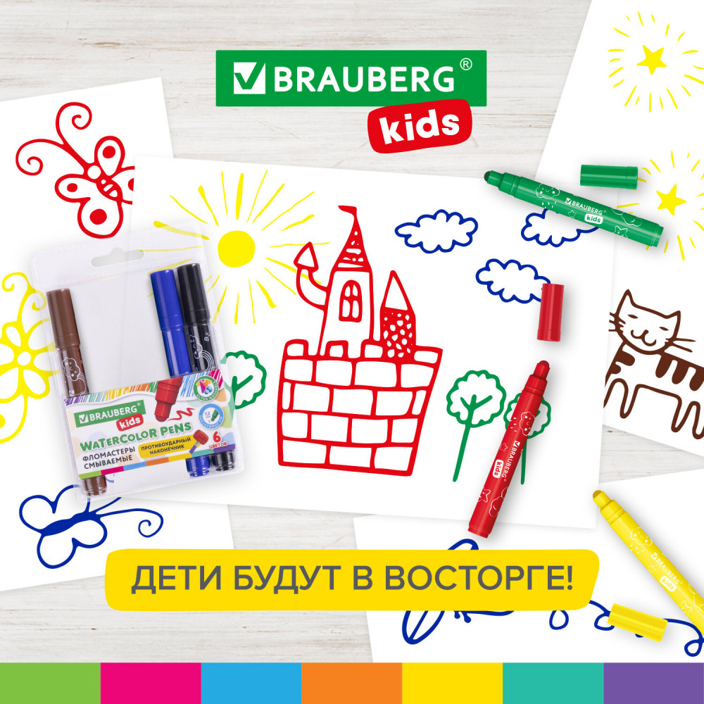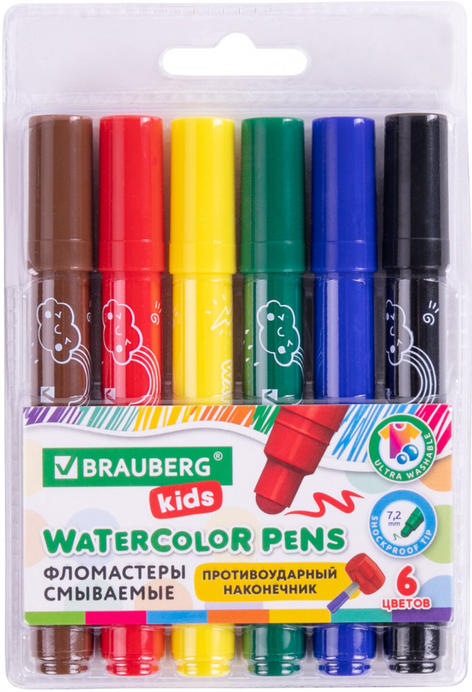 Brauberg Набор фломастеров смываемых-20% +25 яркие цвета смываются удобные крышечки подсохшие фломастеры