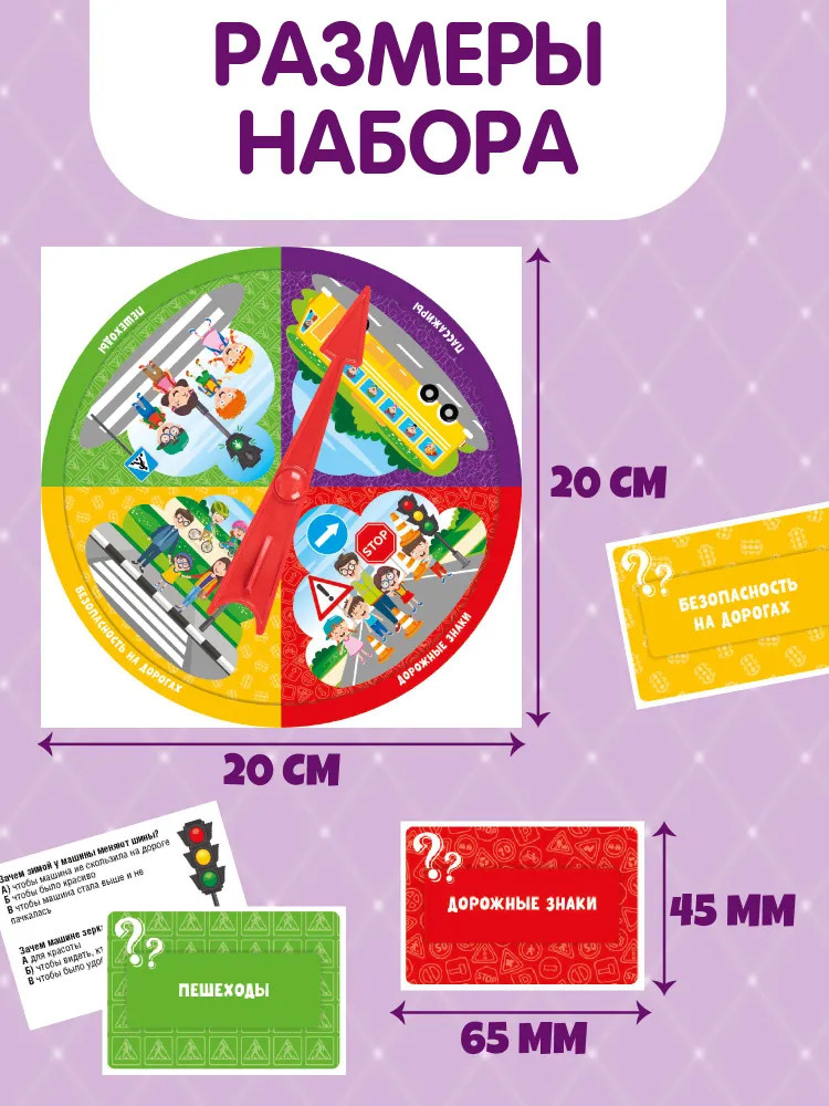 💳 Оплатить за товар можно при получении 🇰🇿 Есть бесплатная доставка по Казахстану от 1 дня 🎁 Копите бонусы с каждой покупки Настольная развивающая игра-викторина «Правила дорожного движения» — полезная и интересная игра, которая позволяет расширить кругозор и проверить знания правил дорожного движения для пешеходов, пассажиров, узнать назначение дорожных знаков и правила безопасности на дорогах. В эту игру можно играть с друзьями! |