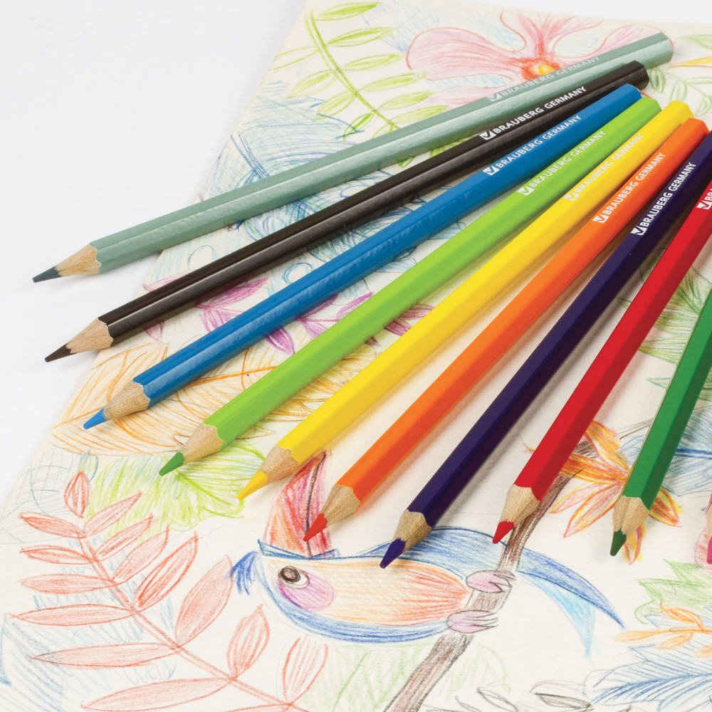 Набор состоит из 12 цветов: розовый, красный, желтый, оранжевый, салатовый, зеленый, голубой, синий, фиолетовый, коричневый, серый, черный. Шестигранная форма сечения корпуса позволяет не скатываться карандашу с поверхности стола во время занятий рисованием. Они изготовлены из древесины ценных пород и имеют лакированный корпус. Высокосортная древесина и качество исполнения гарантируют легкую заточку. Благодаря высококачественному грифелю диаметром 3 мм рисунок ляжет на бумагу густо, сплошной четкой линией. Все карандаши заточены и поставляются в картонной упаковке с европодвесом. |
