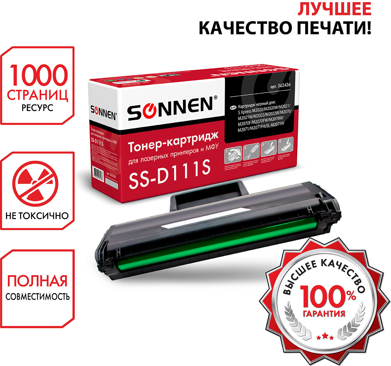 Sonnen Картридж для принтера SS-D111S, цвет черый-20% +174