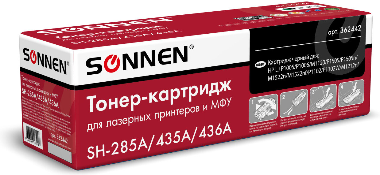 Sonnen Картридж для принтера SH-CE285A/CB435A/CB436A, цвет черный-20% +143