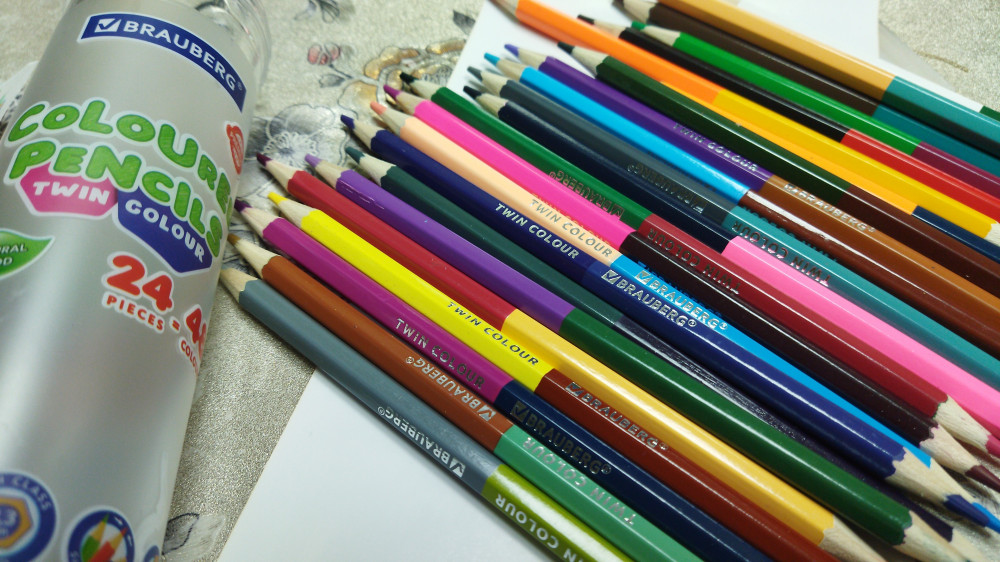 Карандаши мягкие. Яркий сочный цвет получается даже не прикладывая усилий. Специально искала двусторонние карандаши в пенале.