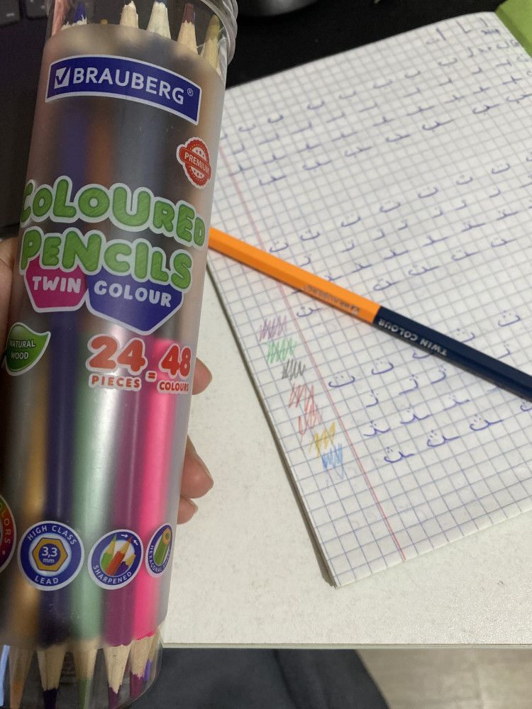 Карандаши хорошие, понравились! Удобные тем что двухсторонние.