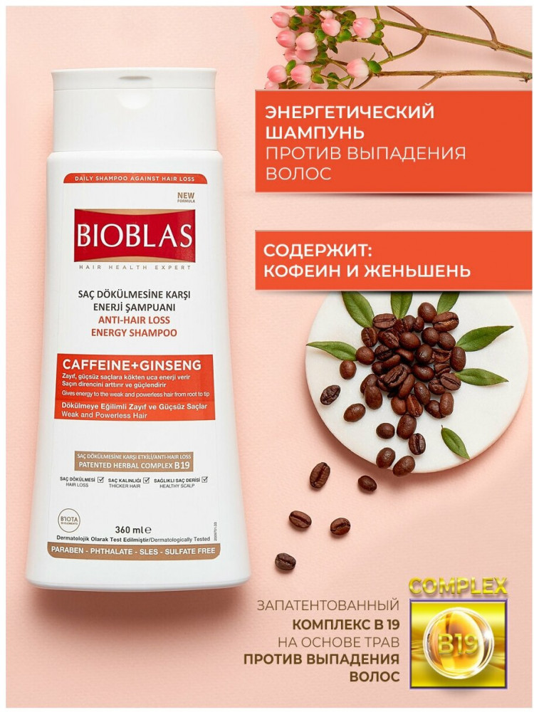 | Bioblas Шампунь против выпадения волос с кофеином и женьшенем