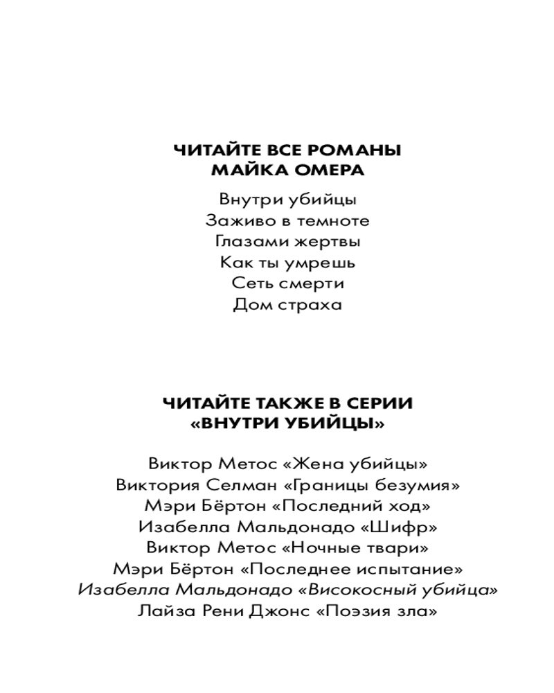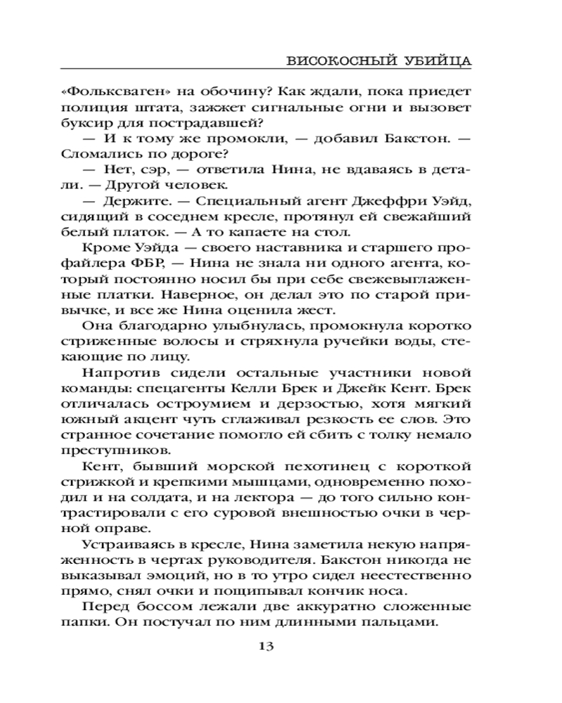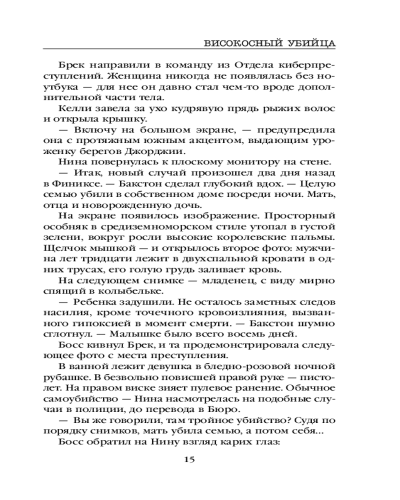 Високосный убийцаВ данный момент этот товар отсутствует в продаже. Возможно, у нас найдется аналогичный или похожий товар здесь. Серия: Tok. Внутри убийцы. Триллеры о психологах-профайлерах Он — мастер создания иллюзий. Но смерть у него всегда настоящая... Нина Геррера — та, кому удалось сбежать от загадочного серийного убийцы по прозвищу Шифр, а затем ликвидировать его. Теперь она входит в группу профайлеров ФБР. Мать, отец и новорожденная дочь — все мертвы. Восьмидневная малышка задушена, мужчина убит выстрелом в сердце, женщина легла в ванну и выстрелила себе в висок. Все выглядит как двойное убийство и суицид. Но это не так. Это — почерк нового серийного убийцы. Впрочем, нового ли? |