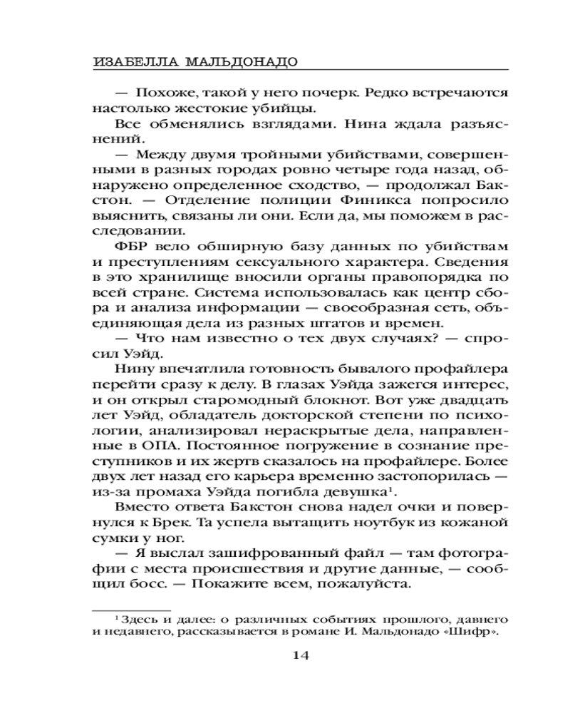 Продолжение цикла о Нине Геррере от которой я в восторге. Всем советую прочитать и первую часть "Шифр". Много читала таких книг, но у Изабеллы Мальдонадо своя изюминка.