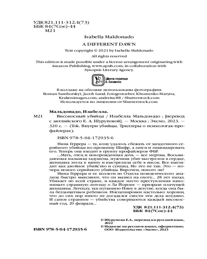 "Високосный убийца" И.Мальдонадо книга издана с интересным переплётом: на переплёте вырез размером с фото и надпись "убийца он мастер создания иллюзий"; открываете переплёт - надпись убийца но смерть у него настоящая...". Оригинальный дизайн, кратко характеризующий суть книги. Содержание книги изложено просто безупречно с позиции меня, как криминалиста. В нём есть всё - и интрига сюжета, и весьма грамотное расследование убийств. Сразу чувствуется, что автор прекрасно владеет темой (например, есть ссылка на работы Дугласа; разграничение понятий "психопат" и "социопат"; и так далее. Великолепный детектив великолепного автора!!