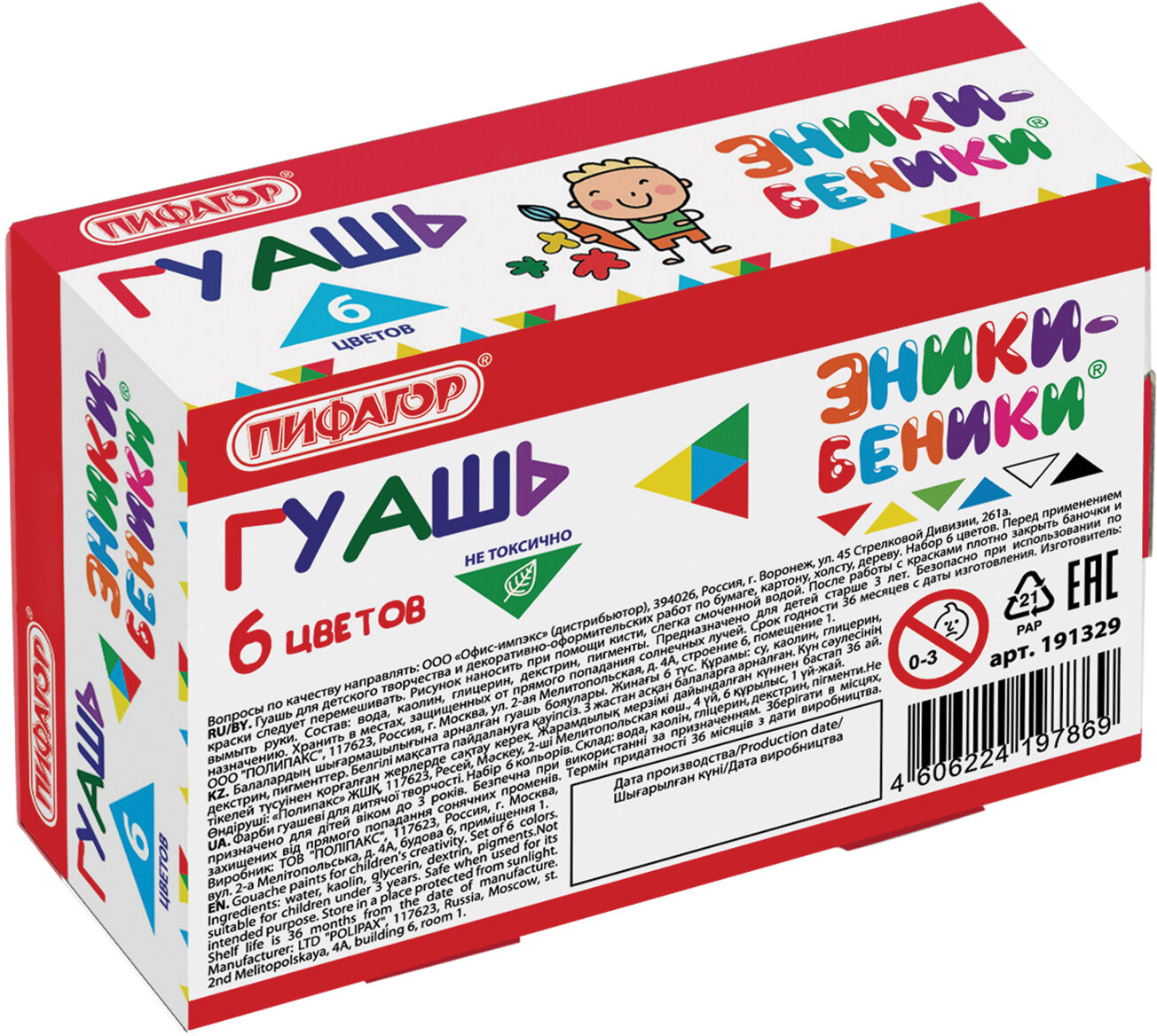 💳 Оплатить за товар можно при получении 🇰🇿 Есть бесплатная доставка по Казахстану от 1 дня 🎁 Копите бонусы с каждой покупки Серия: Эники-беники Переоценить пользу рисования для детей просто невозможно. А какое же изобразительное искусство без использования самой благородной краски — гуашь? |