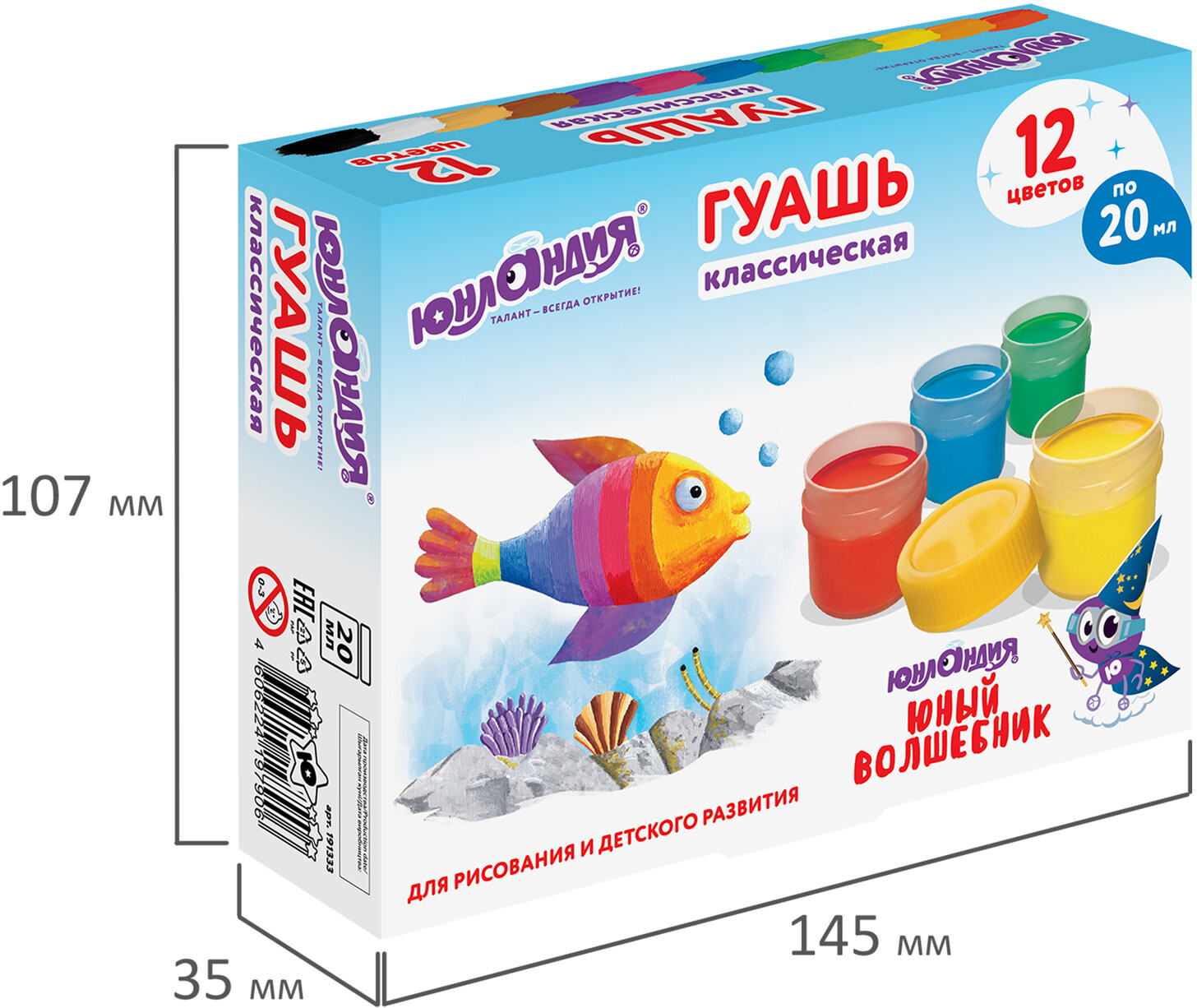 Юнландия Набор гуаши-20% +49 яркие цвета объем подходит детям