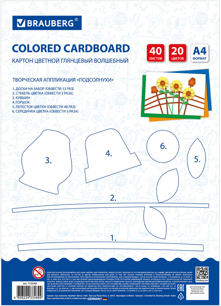 💳 Оплатить за товар можно при получении 🇰🇿 Есть бесплатная доставка по Казахстану от 1 дня 🎁 Копите бонусы с каждой покупки Набор цветного картона Brauberg предназначен для творчества и хобби и может использоваться детьми с трехлетнего возраста. Картон рекомендован для уроков труда и технологии. Творческая инструкция по созданию аппликации на обороте. |