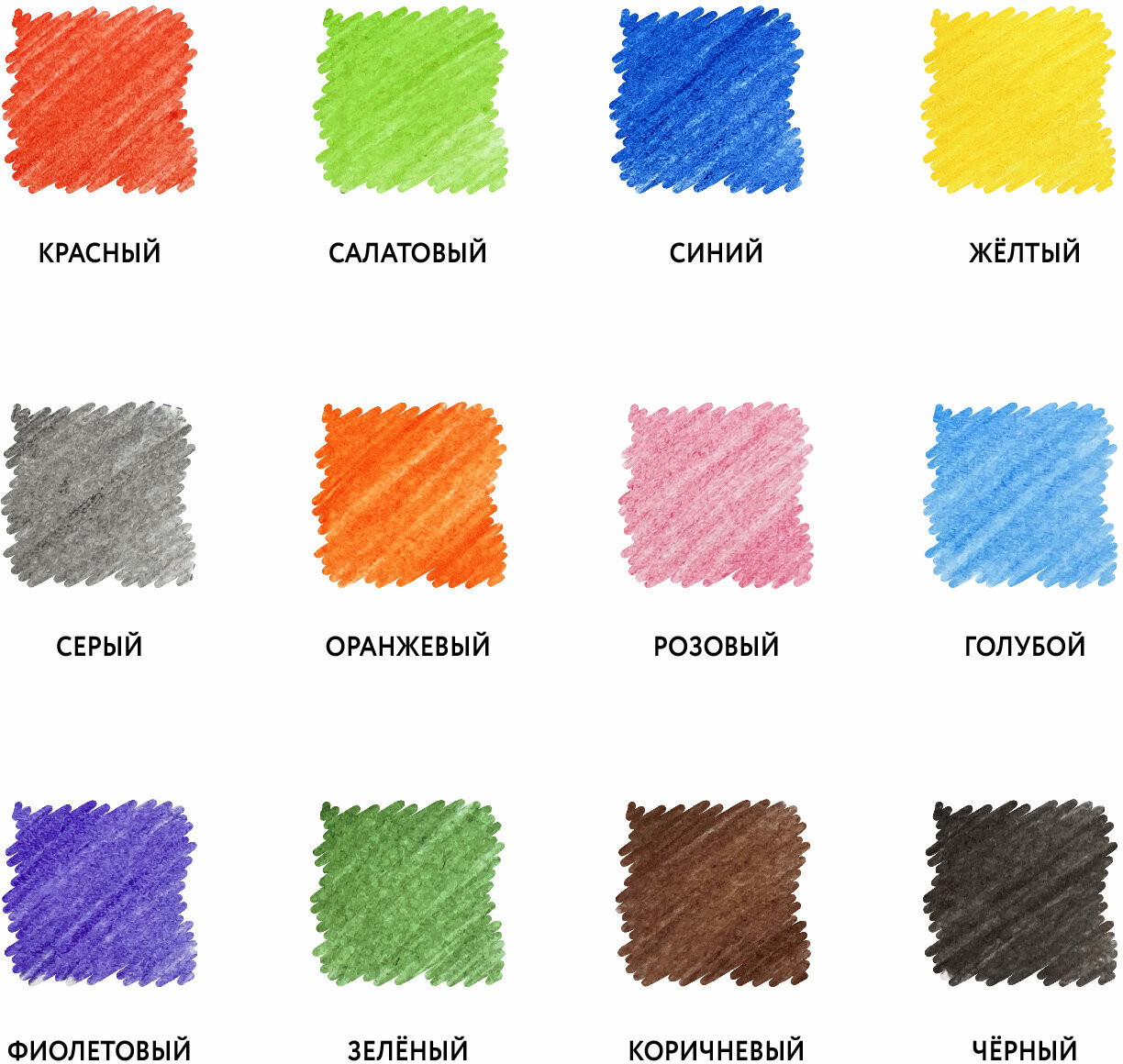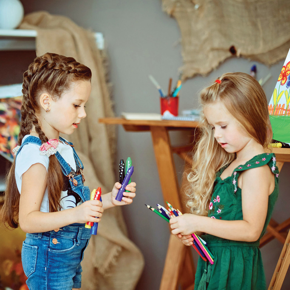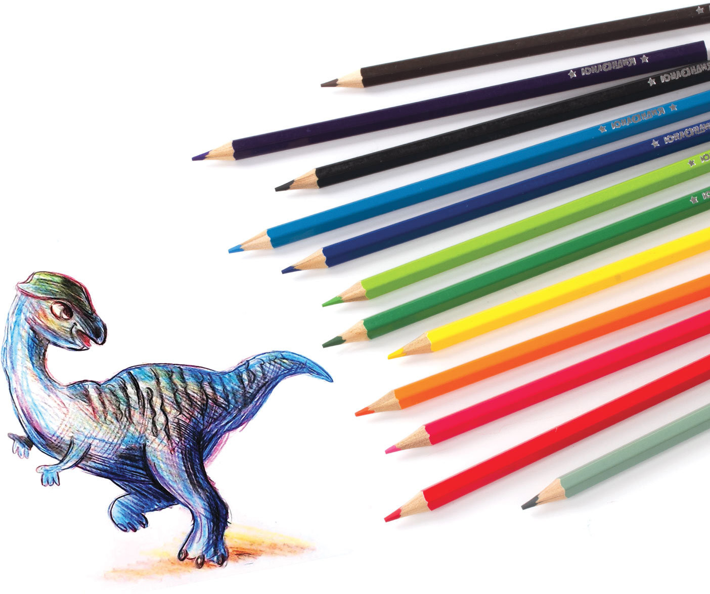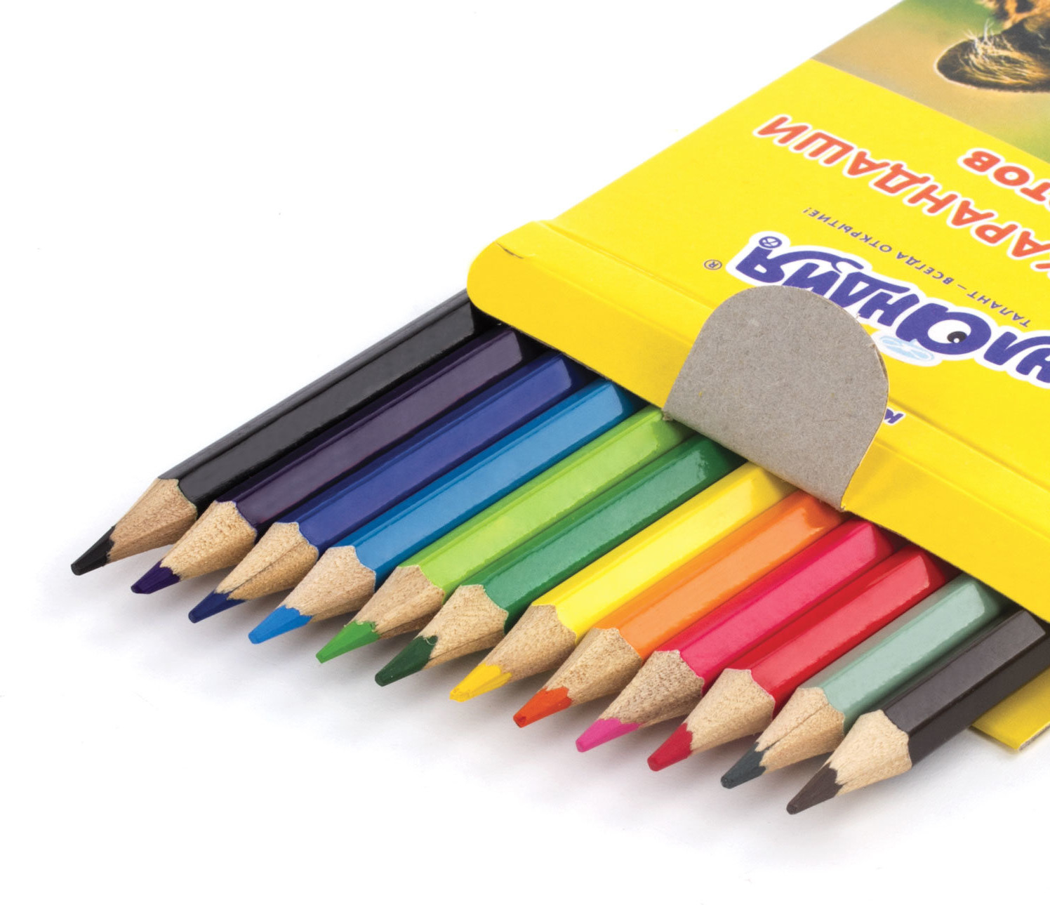 Набор состоит из 12 цветов: розовый, красный, желтый, оранжевый, салатовый, зеленый, голубой, синий, фиолетовый, коричневый, серый, черный. Яркие цвета развивают цветовосприятие ребенка. Шестигранная форма сечения корпуса позволяет не скатываться карандашу с поверхности стола во время занятий рисованием. Они изготовлены из древесины ценных пород и имеют лакированный корпус. Высокосортная древесина и качество исполнения гарантируют легкую заточку. Мягкий грифель качества «А» с диаметром 3 мм обладает повышенной прочностью, не ломается и не крошится при заточке. Все карандаши заточены и поставляются в картонной упаковке с европодвесом.