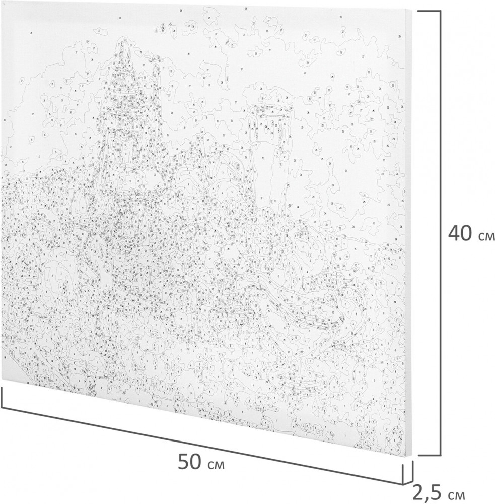 Три синтетические кисти разного размера идеально подойдут для закрашивания элементов различной сложности. Холст из 100% хлопка плотностью 290 г/м2 с высококачественной печатью и отличным натяжением. При работе с картиной дополнительно могут понадобиться: емкость с водой для мытья кисти и салфетка для удаления воды с кисти (в комплект не входят).