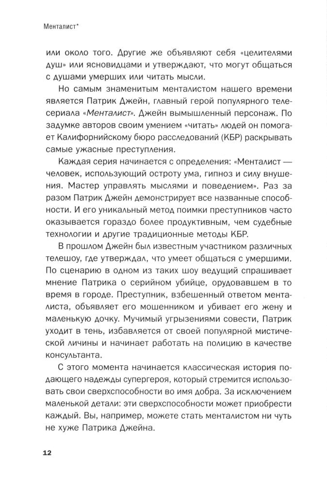 Менталист. Скрытые механизмы влияния на окружающихВ данный момент этот товар отсутствует в продаже. Возможно, у нас найдется аналогичный или похожий товар здесь. Серия: Менталист Кто такой менталист? Медиум, гипнотизер или обычный манипулятор? Как, всего лишь за несколько минут, он может узнать о человеке практически все, просто наблюдая за ним? Автор этой книги - Саймон Уинтроп - раскроет главные секреты героя сериала "Менталист" Патрика Джейна. Освоив определенные техники, Вы научитесь "читать" людей, словно открытую книгу, а также управлять их мыслями и поведением. С помощью этой книги Вы сможете начать свой собственный путь к вершинам ментального искусства! |