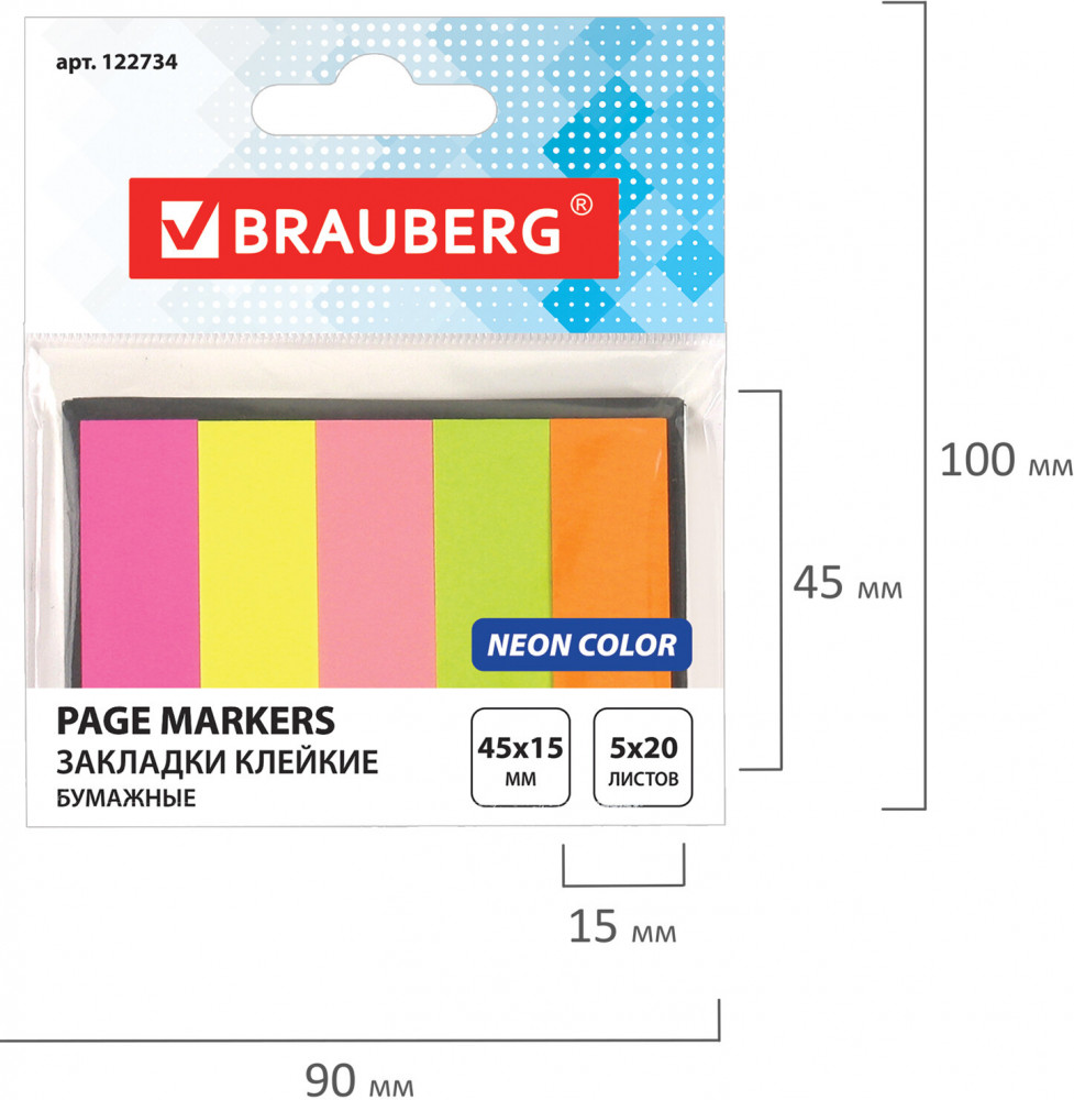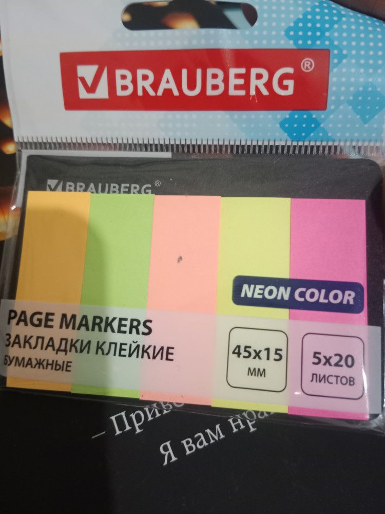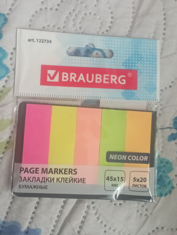 Brauberg Закладки клейкие неоновые бумажные-20% +15 подходит для учебы плотная бумага удобно писать яркие цвета
