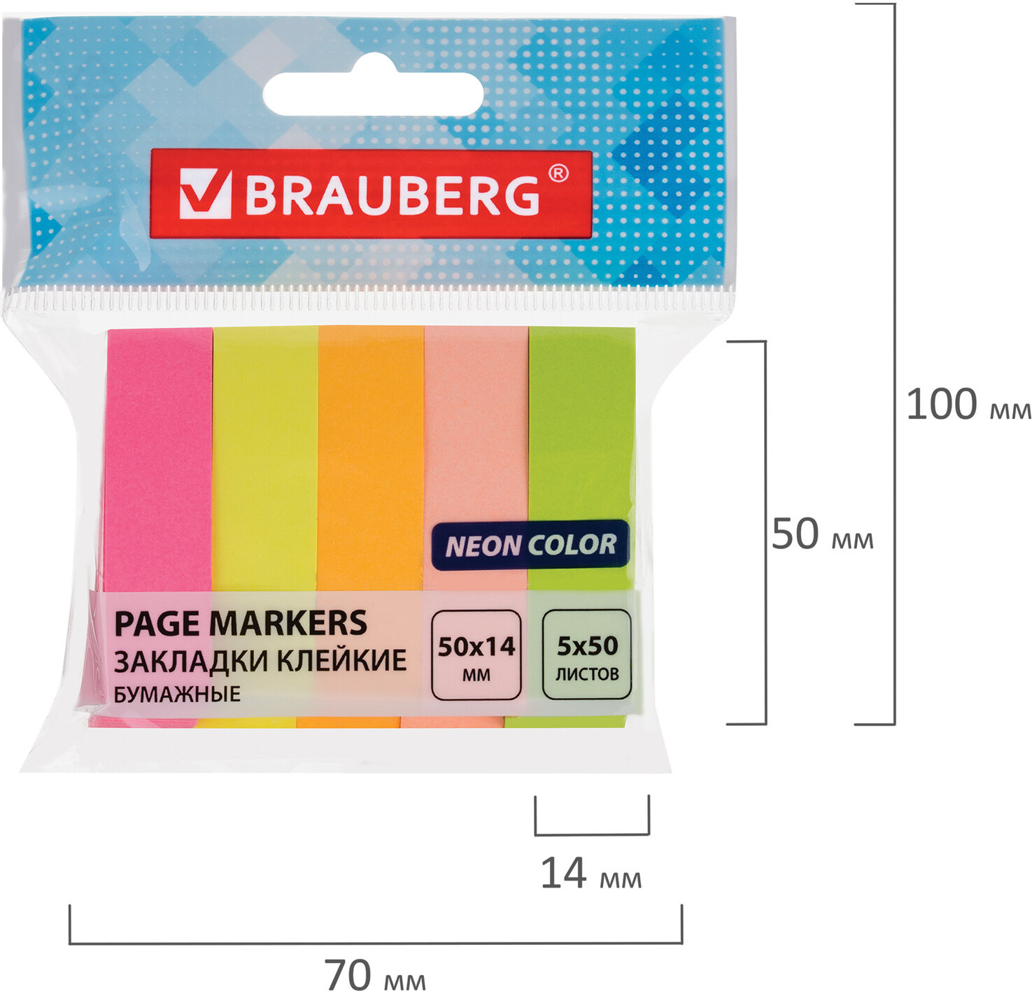 Brauberg Закладки клейкие неоновые бумажные-20% +23