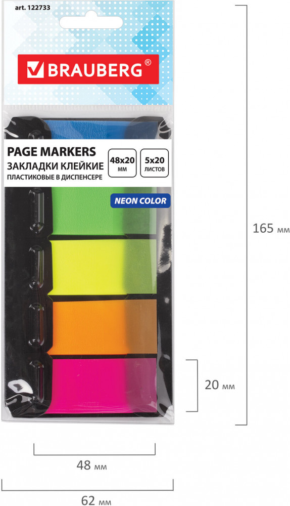 Brauberg Набор закладок пластиковых в диспенсере-20% +21