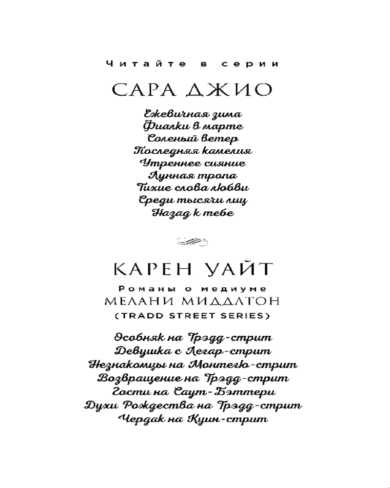 💳 Оплатить за товар можно при получении 🇰🇿 Есть бесплатная доставка по Казахстану от 1 дня 🎁 Копите бонусы с каждой покупки Серия: Зарубежный романтический бестселлер. Романы Сары Джио и Карен Уайт Жизнь Мелани полна взлетов и падений. Она в серьезном разладе со своим мужем Джеком, а еще ей никак не удается разгадать тайну убийства, о расследовании которого попросила ее подруга. Даже талант медиума не помогает Мелани. |