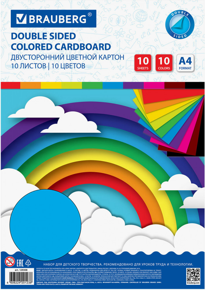 Brauberg Набор картона цветного-20% +22 плотность цвета мягкость качество для школы