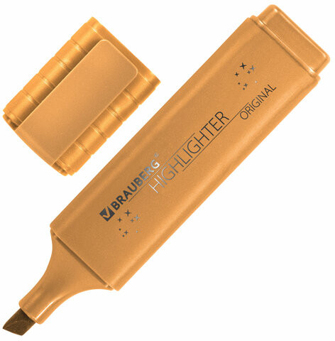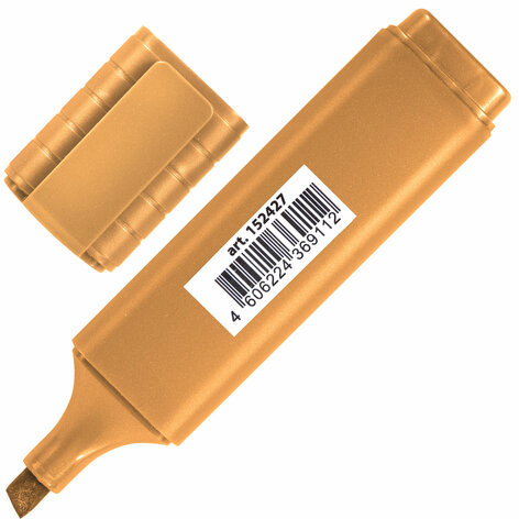 Текстовыделитель золотого цвета имеет плоскую форму корпуса, диаметр которого 25 мм. Скошенный наконечник имеет толщину линии письма от 1 до 5 мм, что обеспечивает удобство при работе с текстом, напечатанным мелким шрифтом, или таблицами. Благодаря перламутровым чернилам текстовыделитель можно использовать не только для выделения и подчеркивания текстов, но и как маркер для творчества. Наконечник с открытым колпачком не высыхает в течение 8 часов. Текстовыделитель обладает экономным расходом чернил, при этом длина линии письма достигает 300 метров. Чернила быстро впитываются и тем самым предотвращают размазывание в процессе использования. Светоустойчивые чернила не выцветают даже на открытом солнце. Цвет корпуса и колпачка соответствует цвету чернил.