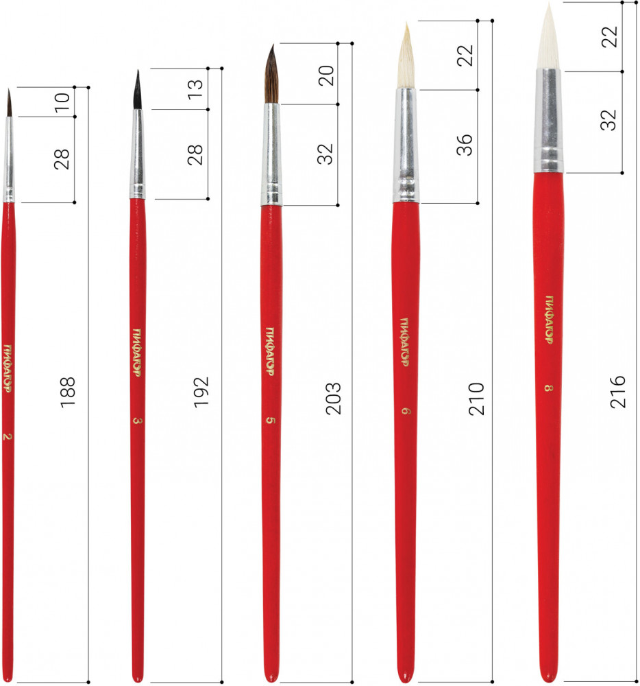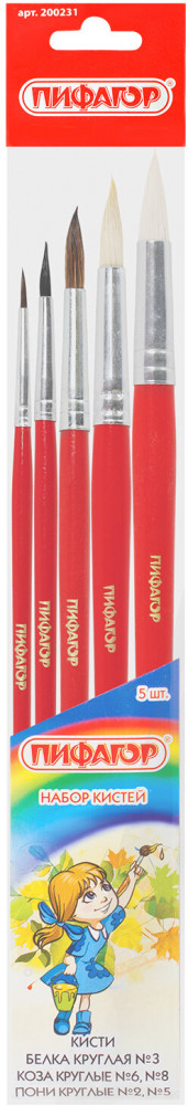 💳 Оплатить за товар можно при получении 🇰🇿 Есть бесплатная доставка по Казахстану от 1 дня 🎁 Копите бонусы с каждой покупки Набор из пяти кистей разного размера «Пифагор» предназначен для детского творчества в образовательных учреждениях и дома. |
