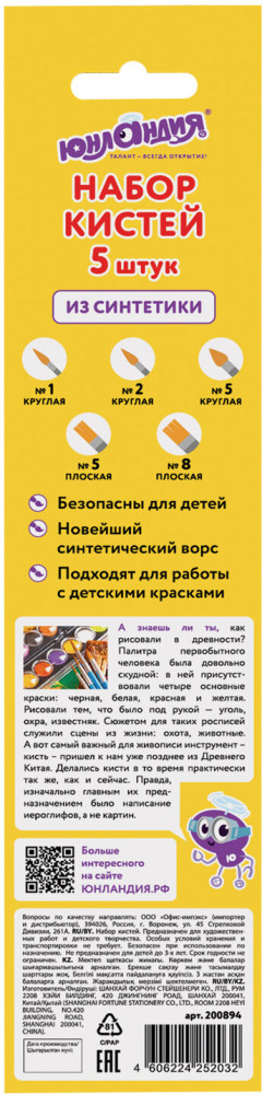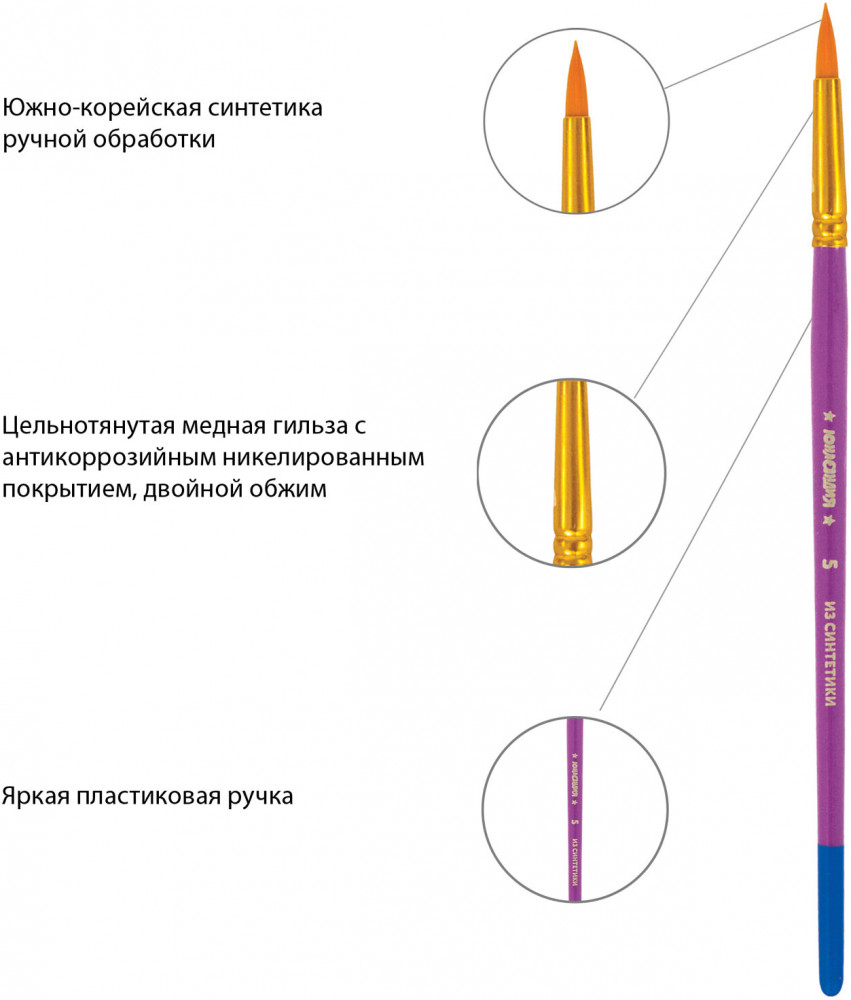 💳 Оплатить за товар можно при получении 🇰🇿 Есть бесплатная доставка по Казахстану 🎁 Копите бонусы с каждой покупки Набор из пяти кистей разного размера «Юнландия» позволяет начинающим художникам решать любые творческие задачи в детском саду, школе и дома. |
