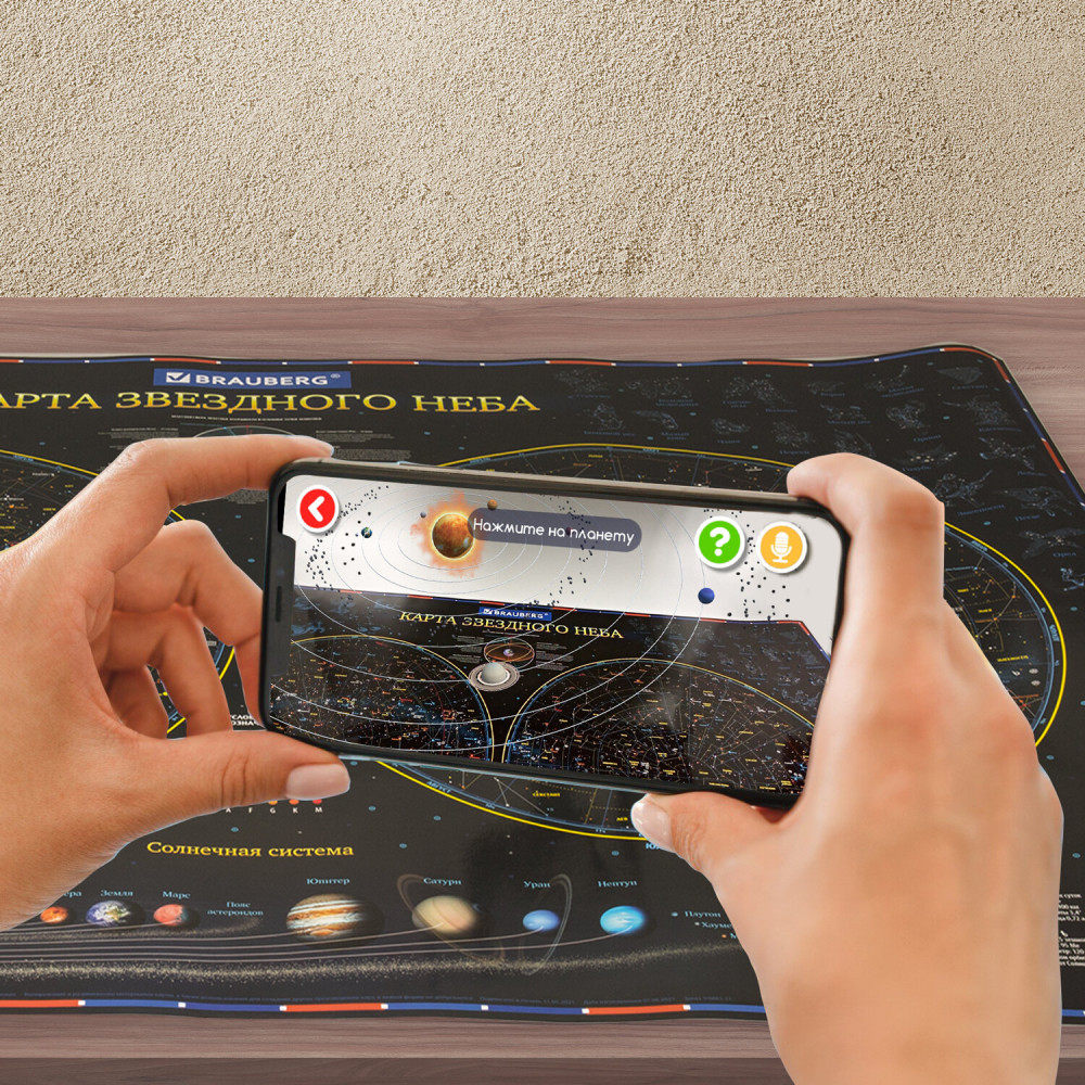 Brauberg Карта интерактивная «Звездное небо и планеты»-20% +42 яркая ламинированная глючное приложение мало информации