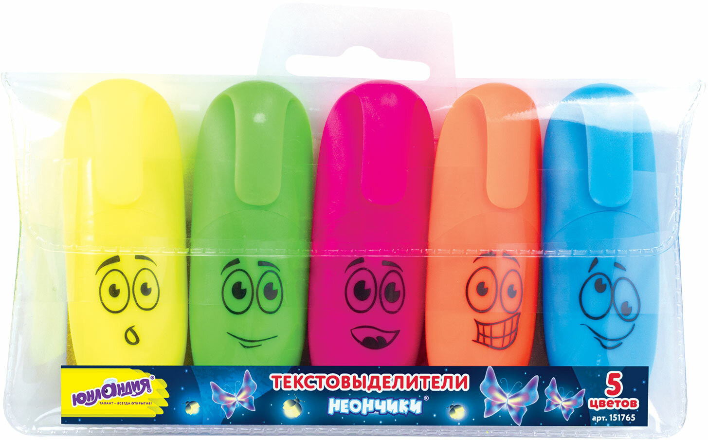 В наборе 5 цветов: голубой, жёлтый, зелёный, оранжевый, розовый.