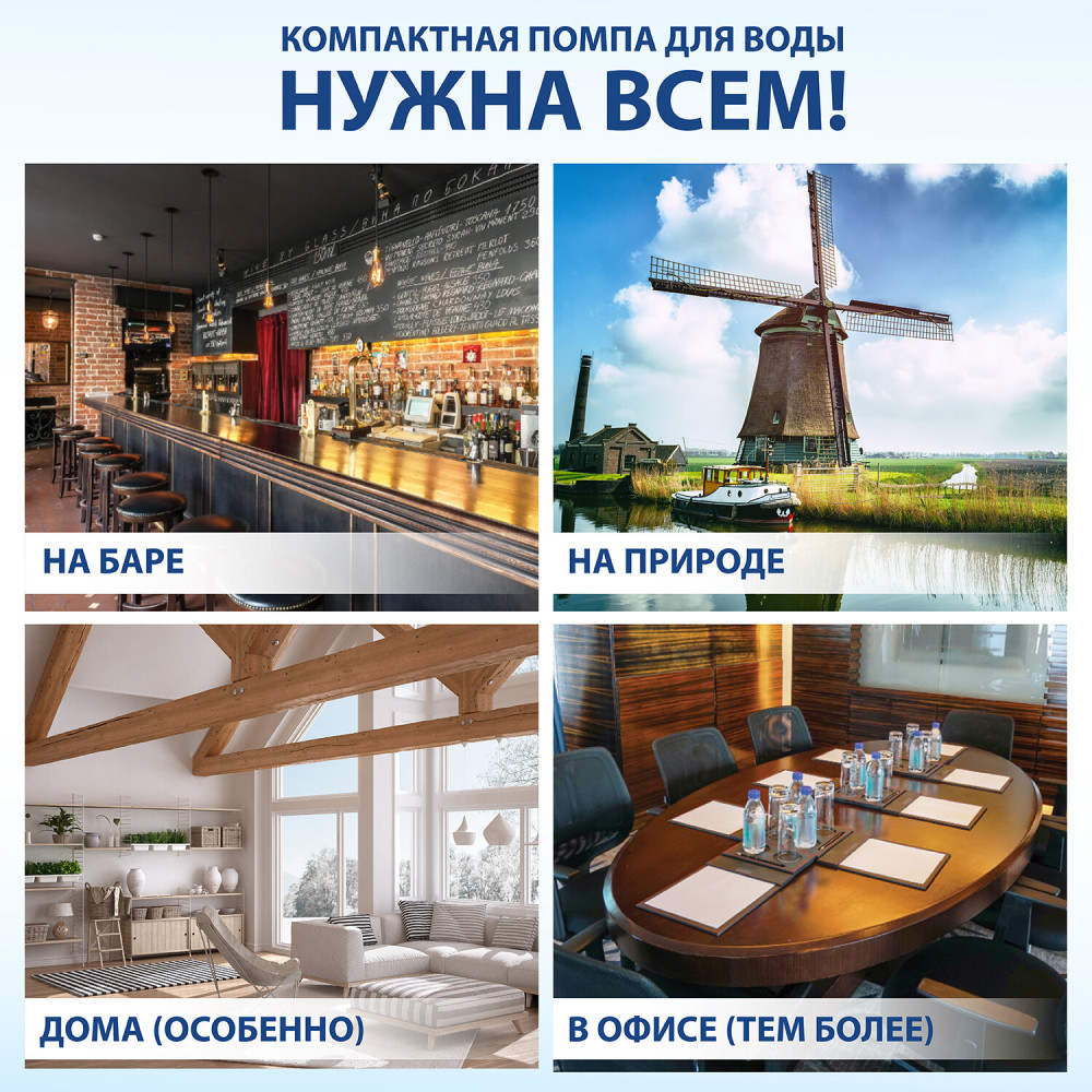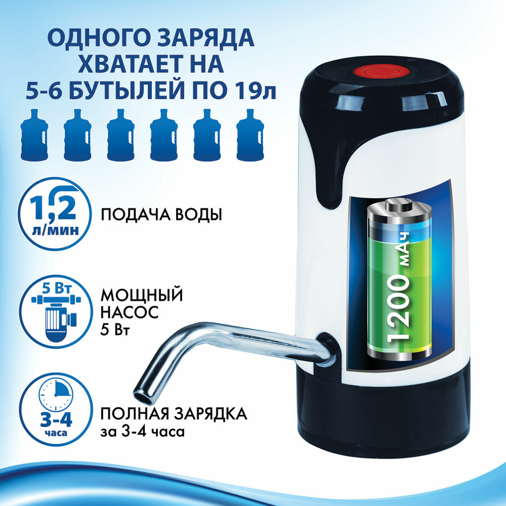 Не совсем разобрались как она надевается поверх горлышка бутыля, если не снимать саму пробку, то она по диаметру не подходит, пробка больше. Если снять крышку с бутыля, то она не крепится. Пока просто сверху незакрепленная у нас стоит, но качает воду, тем не менее.