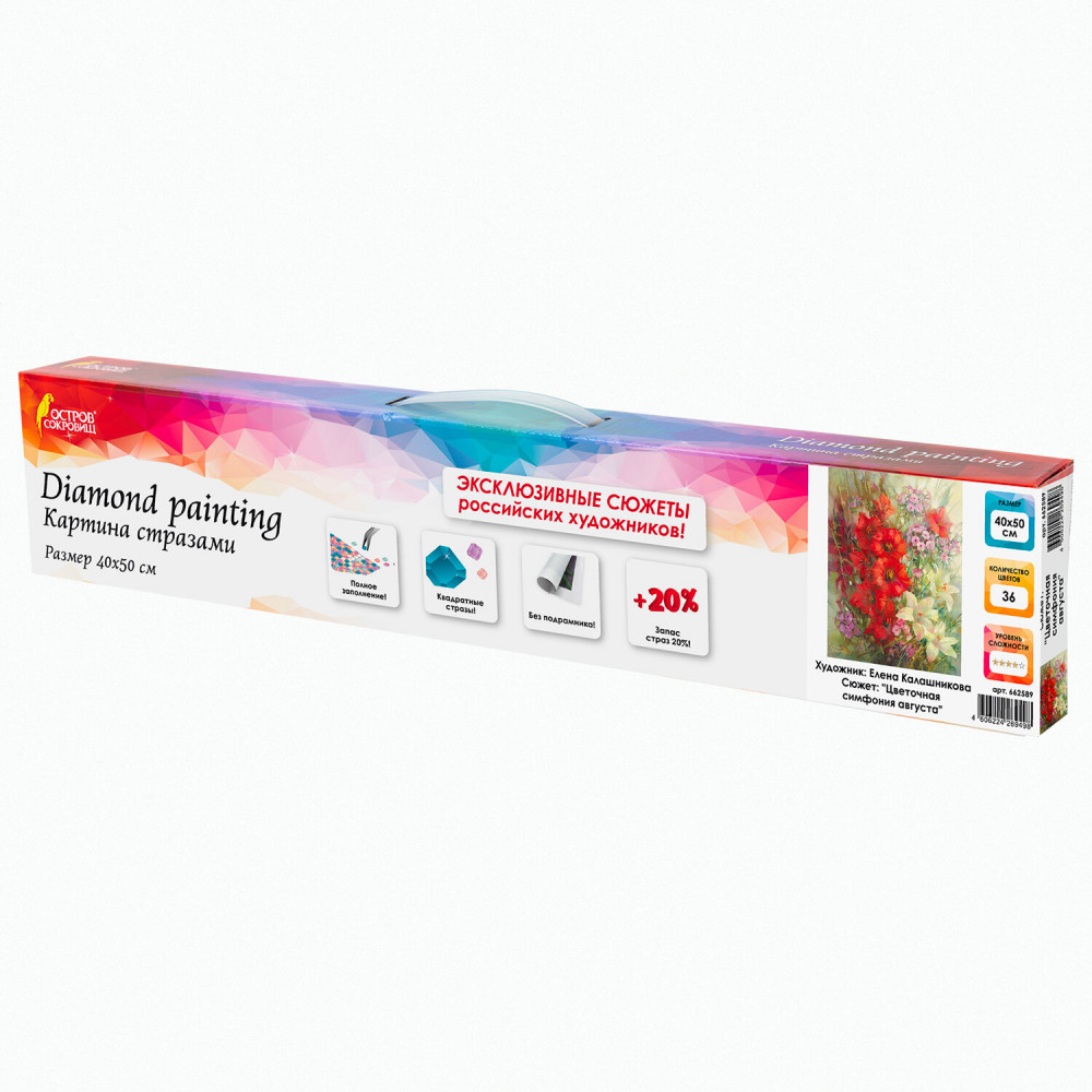 Размер готовой картины составляет 40×50 см. Картина полностью заполняется квадратными акриловыми стразами, благодаря чему готовая работа блистает и переливается на свету. Алмазная мозаика — прекрасное хобби, подходящее для терпеливых людей, ценящих красоту. Картины стразами «Остров сокровищ» — это широкий выбор сюжетов, отличный подарок, как в виде набора, так и в качестве готовой работы, которая послужит эффектным украшением любого интерьера!