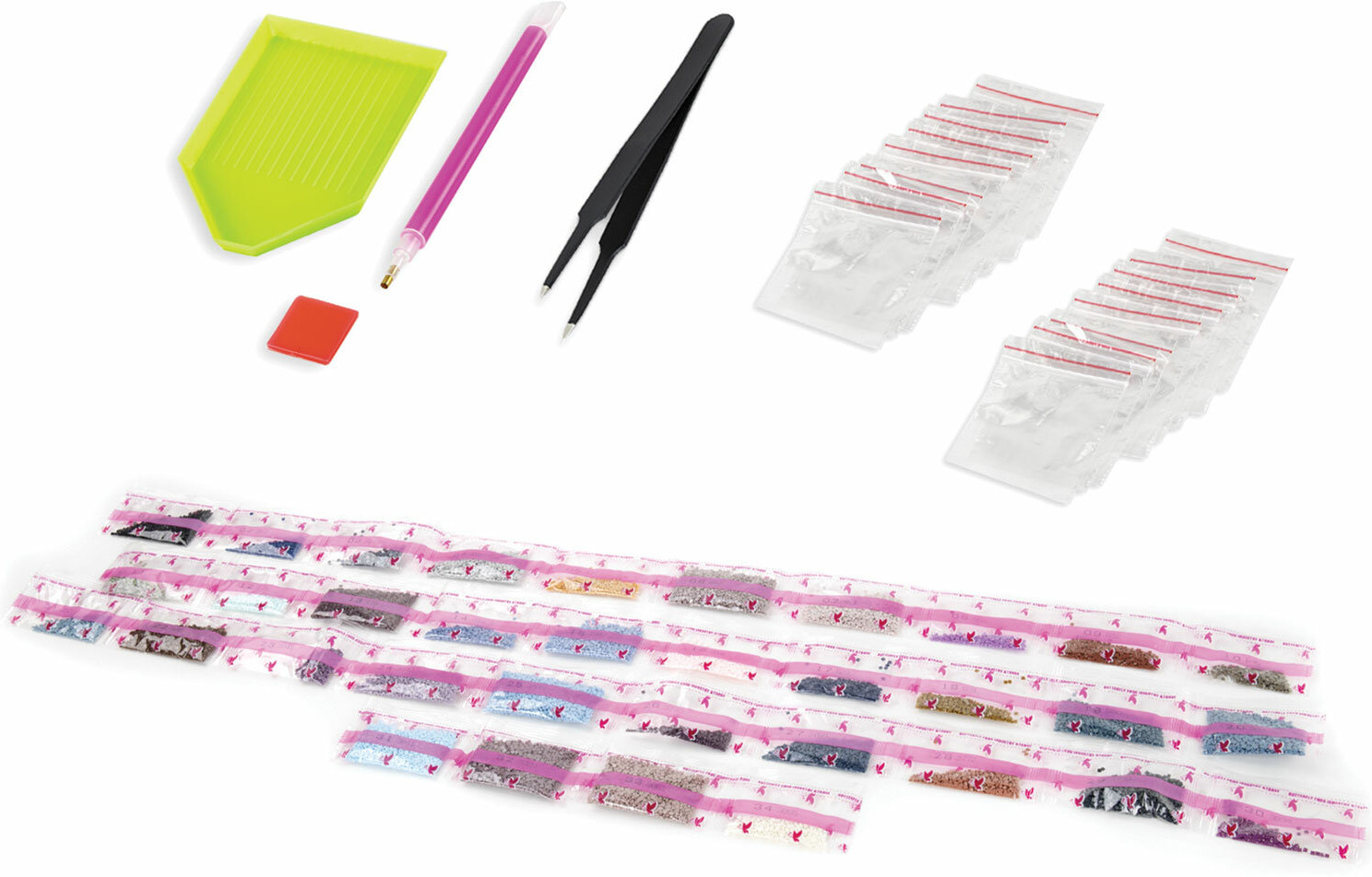 • набор удобных закрывающихся пакетиков для хранения страз;