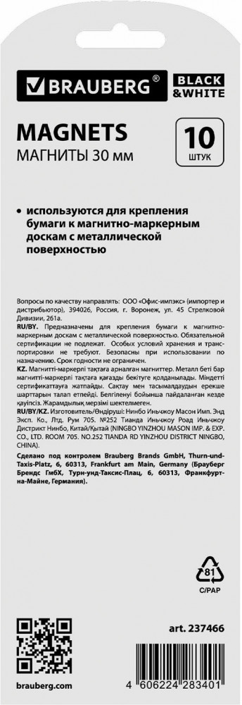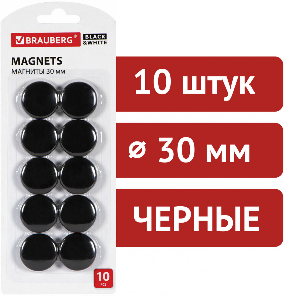Brauberg Набор магнитов для досок усиленных «Black&white»