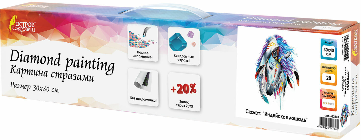 Остров сокровищ Мозаика алмазная «Индейская лошадь»В данный момент этот товар отсутствует в продаже. Возможно, у нас найдется аналогичный или похожий товар здесь. Набор для создания картины в технике алмазной мозаики. Холст с нанесенным изображением и клеевым слоем заполняется акриловыми стразами. Техника алмазной мозаики проста в исполнении и не требует владения никакими специальными навыками. Все необходимые для работы материалы и инструменты входят в набор, с подробной инструкцией можно ознакомиться на упаковке. Товар высокого качества с детально проработанной схемой и надёжным клеевым слоем, но при этом относится к среднему ценовому сегменту. |