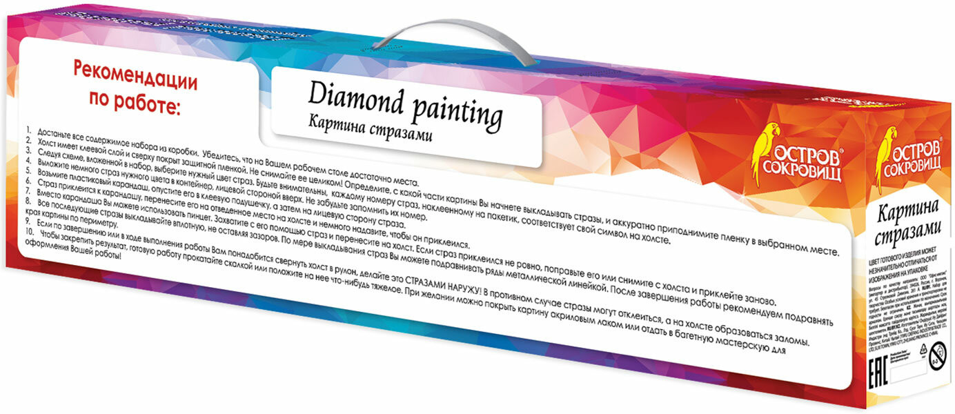 💳 Оплатить за товар можно при получении 🇰🇿 Есть бесплатная доставка по Казахстану от 1 дня 🎁 Копите бонусы с каждой покупки Набор для создания картины в технике алмазной мозаики. Холст с нанесенным изображением и клеевым слоем заполняется акриловыми стразами. Техника алмазной мозаики проста в исполнении и не требует владения никакими специальными навыками. Все необходимые для работы материалы и инструменты входят в набор, с подробной инструкцией можно ознакомиться на упаковке. Товар высокого качества с детально проработанной схемой и надёжным клеевым слоем, но при этом относится к среднему ценовому сегменту. |