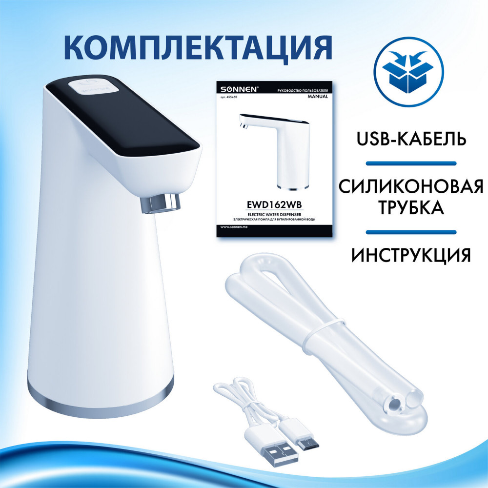 💳 Оплатить за товар можно при получении 🇰🇿 Есть бесплатная доставка по Казахстану от 1 дня 🎁 Копите бонусы с каждой покупки Помпа для воды Sonnen EWD162WB — электрическое приспособление мощностью 5 Вт, предназначенное для розлива воды из больших бутылей на 11 и 19 л. Для удобства использования не нужно снимать крышку с горлышка бутыли, помпа устанавливается прямо на крышку. Производительность этой модели помпы составляет 1,6 л/мин. Встроенный аккумулятор 1200 mAч, которого хватает в среднем на 4-6 бутылей. |