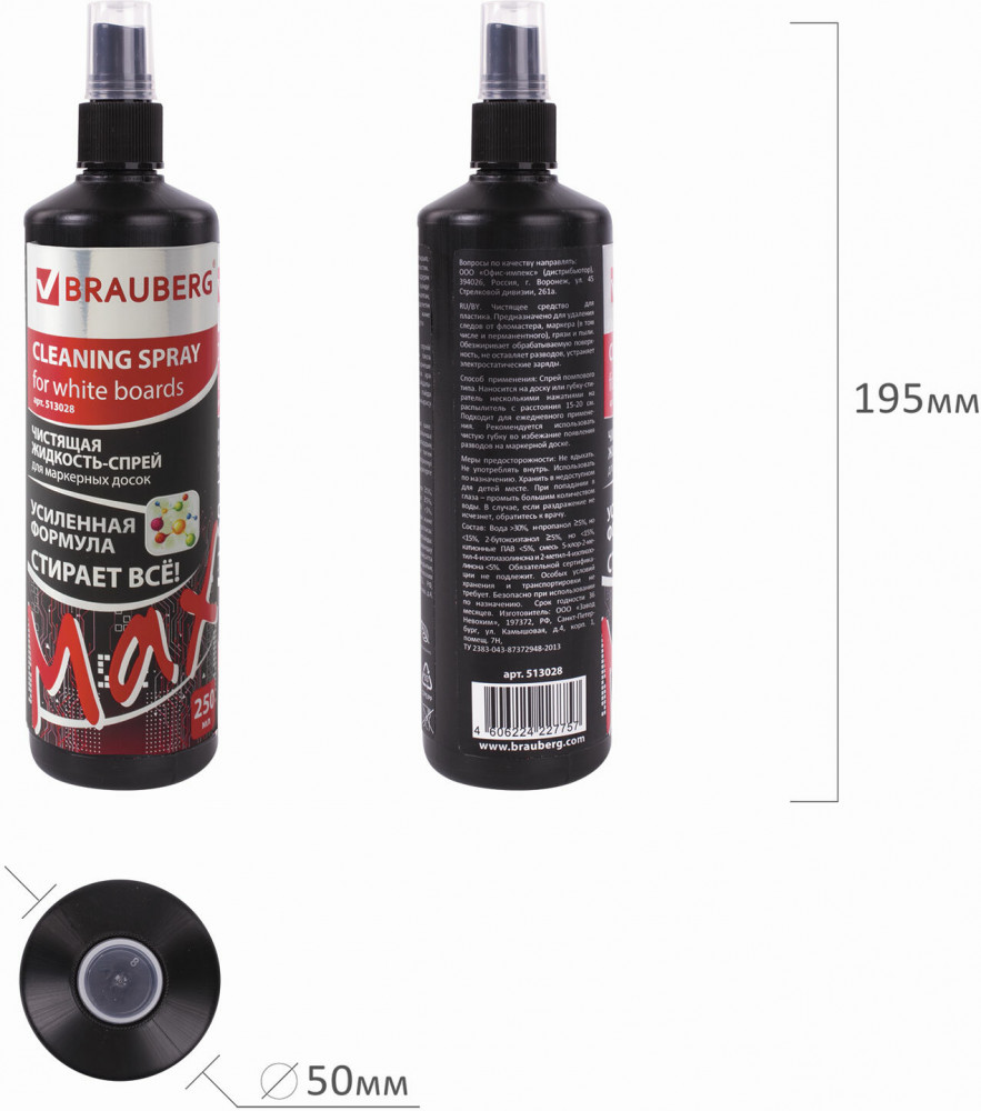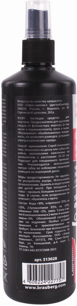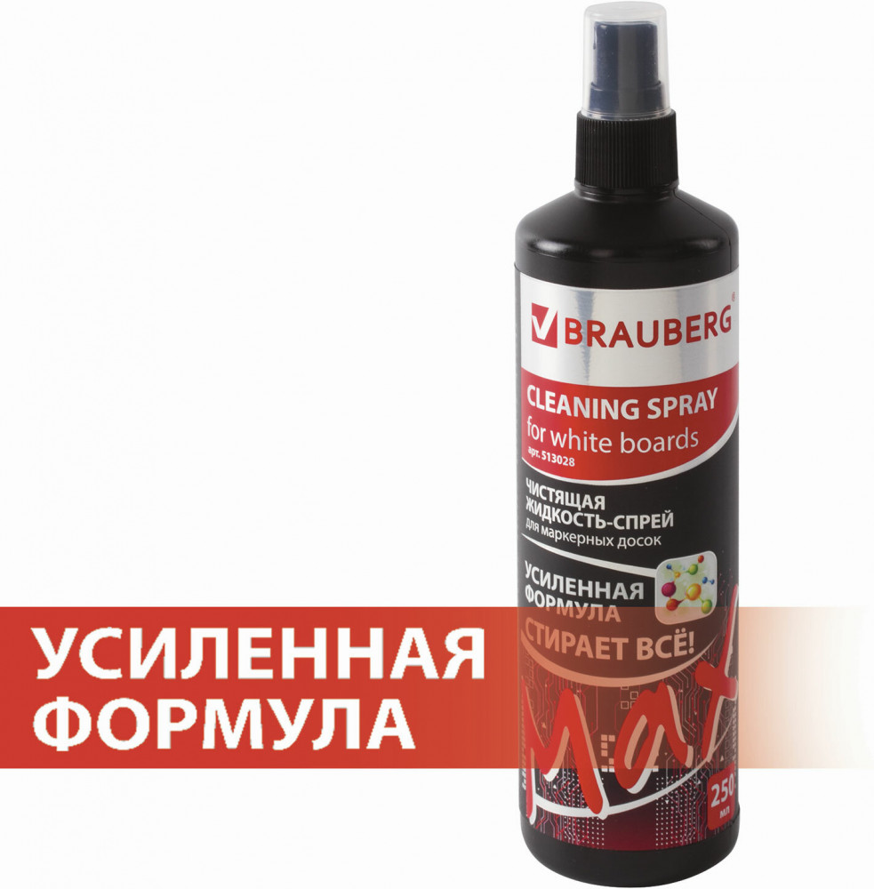 Brauberg Жидкость-спрей чистящий для маркерных досок-30% +38 удаление загрязнений эффективность очистки