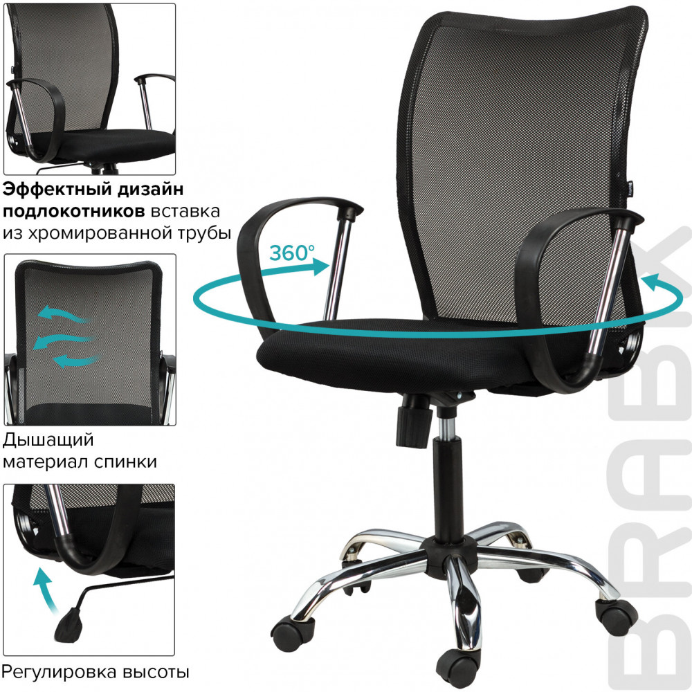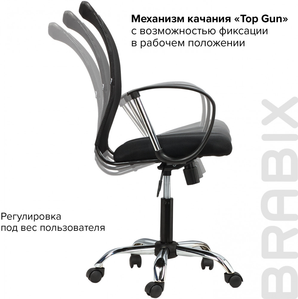 Современное удобное кресло Brabix «Spring MG-308» с выраженной эргономикой. Наличие хромированных деталей придает эстетичный внешний вид, а также повышает запас прочности. Спинка кресла выполнена из прочного сетчатого акрила. Материал обладает высокой воздухопроницаемостью, легко чистится, способен подстраиваться под физиологические изгибы спины, при этом сохраняет форму и не растягивается.