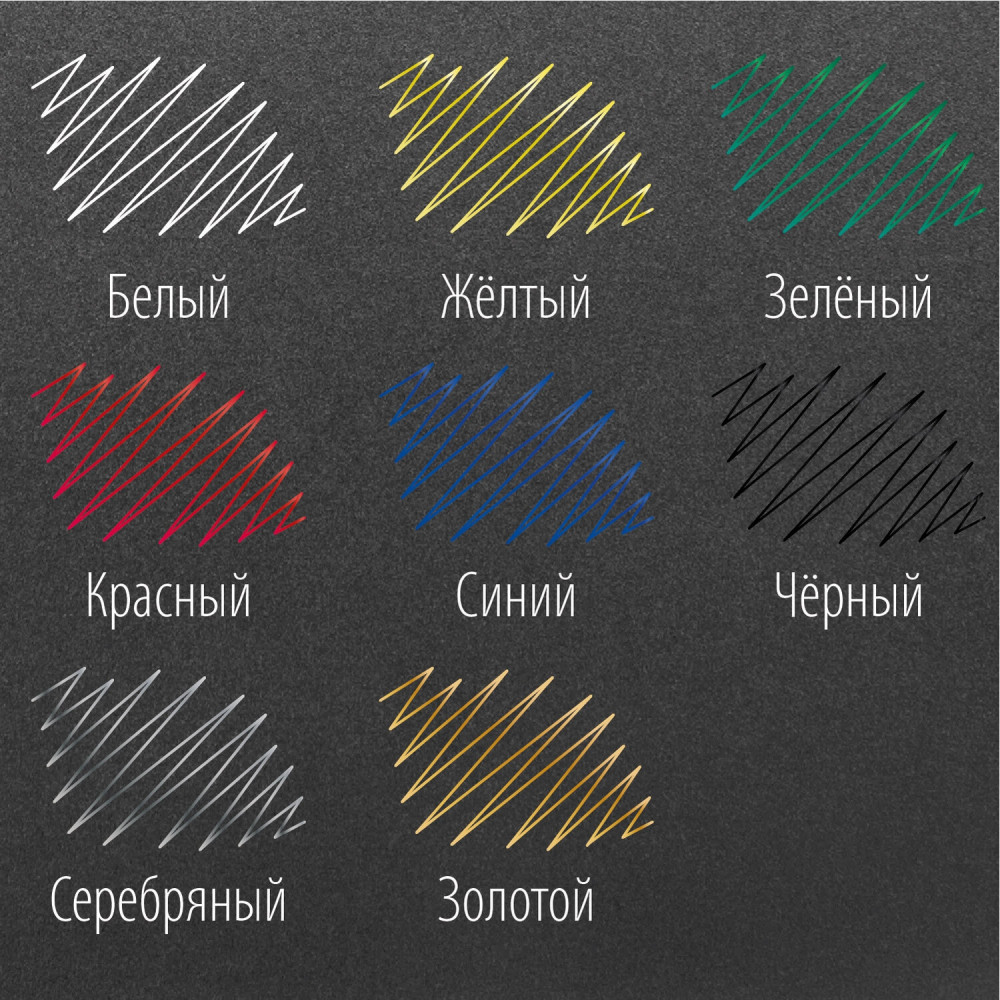В наборе 8 маркеров, заправленные высококачественными чернилами белого, черного, синего, красного, желтого, золотого, серебряного, зеленого цветов с лаковым эффектом, которые идеально подходят для нанесения долговечной маркировки на любые поверхности. Благодаря усиленной формуле чернил краска ложится ровным слоем, полностью закрашивая поверхность. Быстросохнущие чернила предотвращают смазывание в процессе маркировки. После высыхания надписи становятся термо- и водостойкими, а также устойчивыми к выцветанию и механическому истиранию. Отлично подходит для маскировки бытовых дефектов, таких как царапины и сколы. Надежный помповый механизм подачи чернил предотвращает вытекание и разбрызгивание в процессе использования, а также преждевременное высыхание. Цвет колпачка соответствует цвету чернил. |