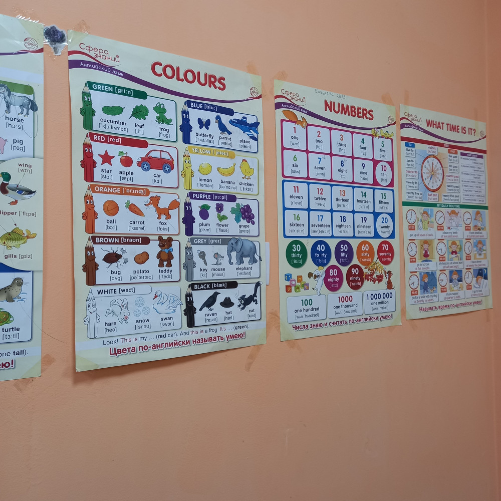 Буковку "u" английскую мы замазали синим фломастером и чудесно используем плакат. В кабинете очень уютно с такими материалами на стене.